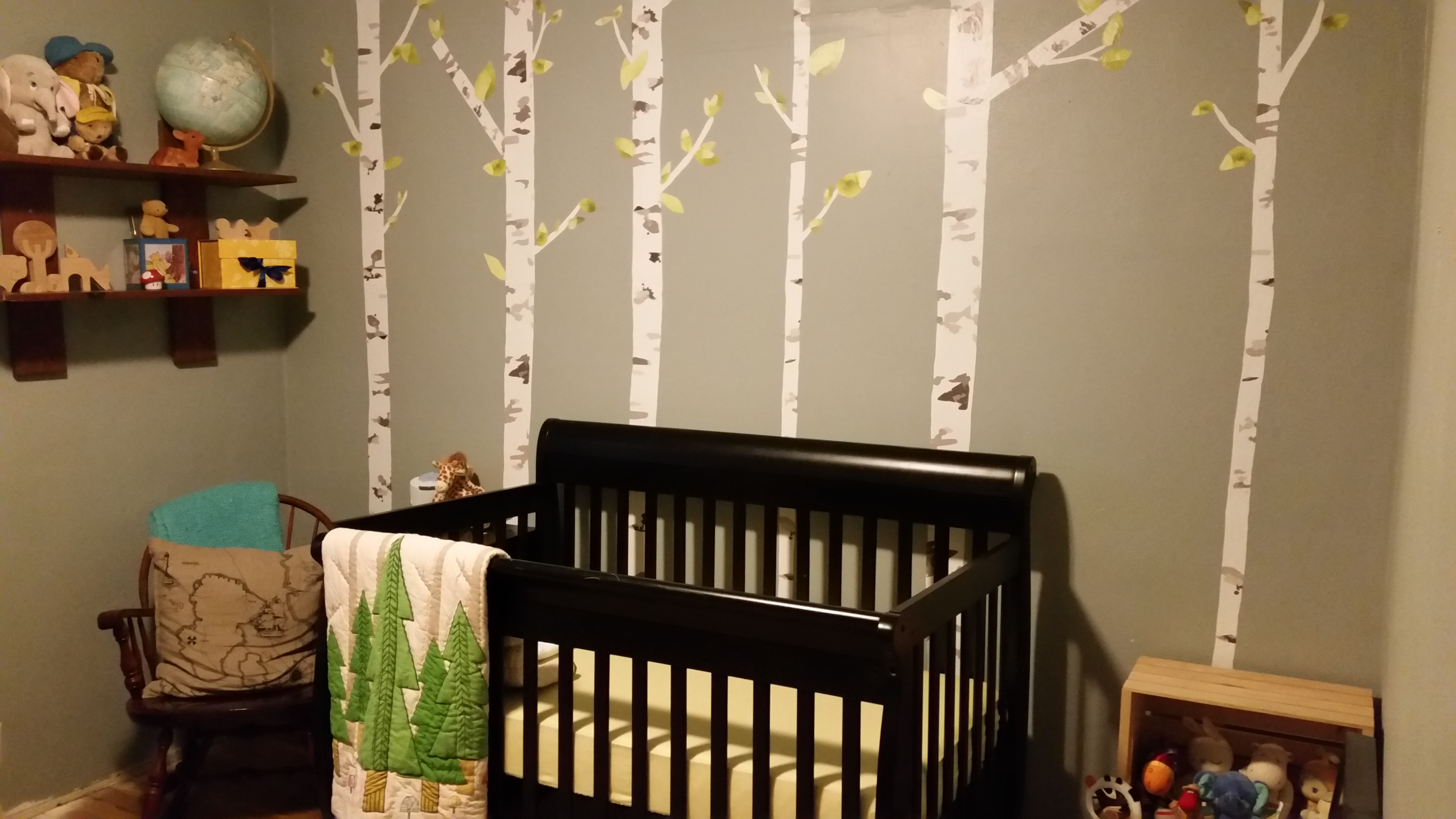 I knew i wanted brown whether it was a boy or girl and the nursery got painted early. Then the decals- it would have beencherry blossomsfor a girl, but i went withjungle vinesfor our little man. (here's a similar one i also like)