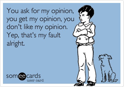 I agree. However, if you don't want honest opinions then don't waste our time asking for them.