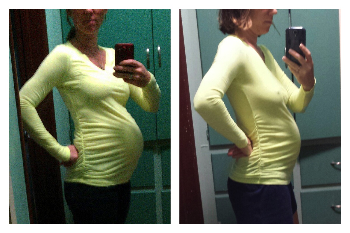 I'm not sure where to put this, so I figured why not in the random thread. I've been feeling like my belly is actually smaller this time than before, although my weight is higher than it was at 18weeks for either of my previous two pregnancies. But I looked back at my 18 week belly shot from my last pregnancy, and I'm pretty sure I was much bigger then. The angle is a little off, but look! This photo leaves me hopeful that I won't be birthing another 9+ pounder!