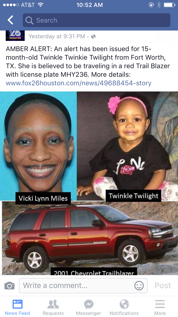 Also this is a thing that happened in Texas....baby was found safe and sound but Twinkle Twinkie Twilight? Oh man