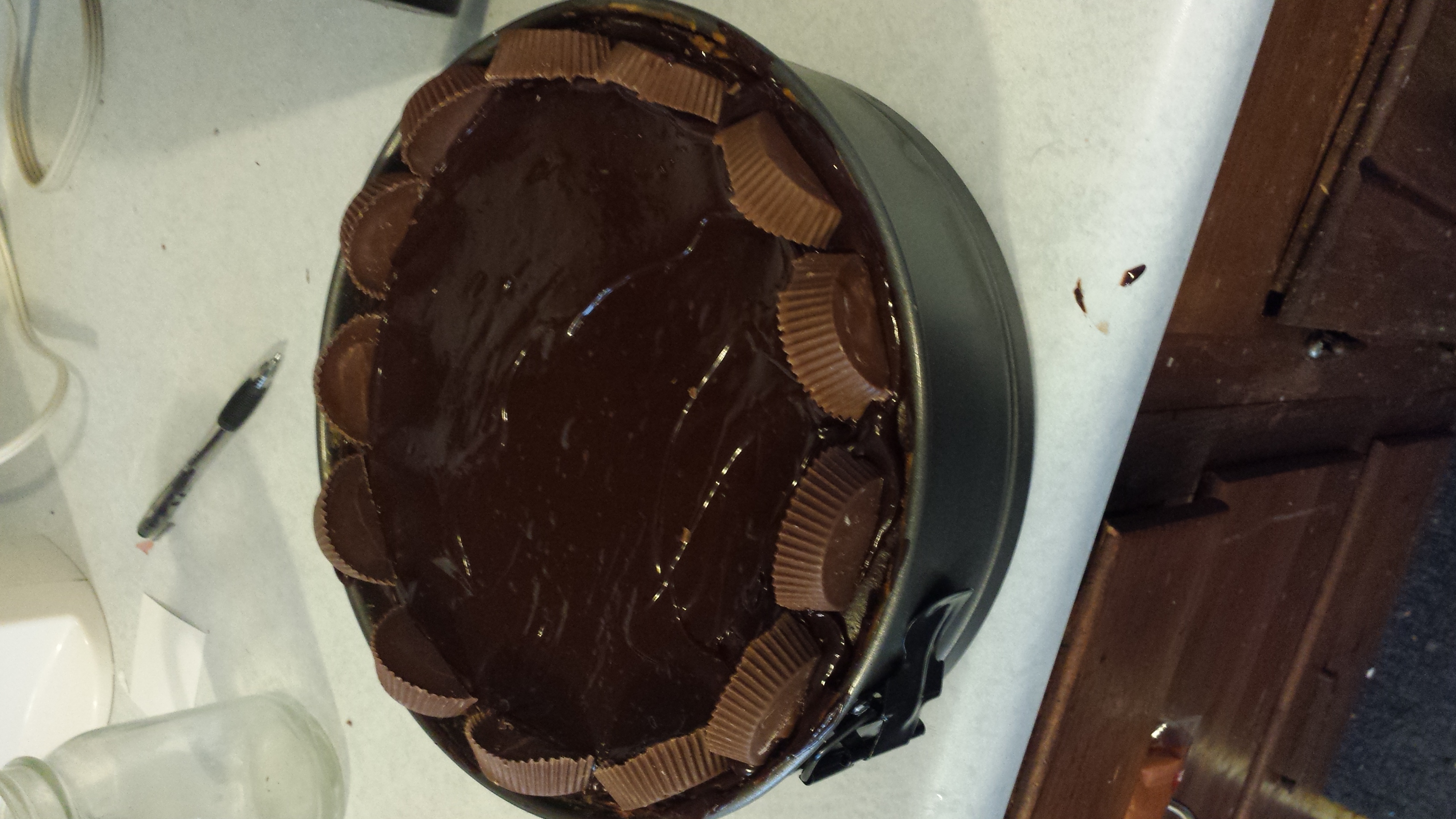 Haha this is soo me tonight trying to make this cheesecake. Eating all the peanut butter chips, and since the pan is 1/4 inch too shallow we were eating the cheesecake filling that wouldn't fit.