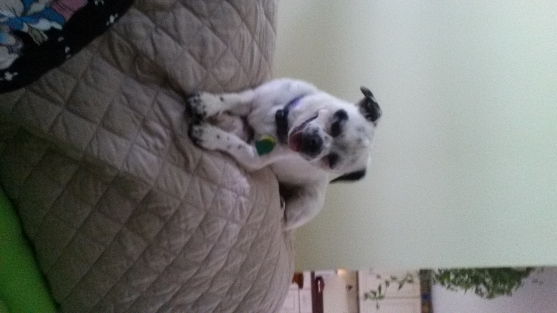 Here is Oliver- and once I get a good pic of Bentley/Oscar I will share that one too Poor Oliver was at the SPCA for over a month- was caught and brought in as a stray with his sister. She got adopted right away but he did not (he is partially deaf). My mom didn't care- she walked in, set her money down and said "sight on scene- I want him!"