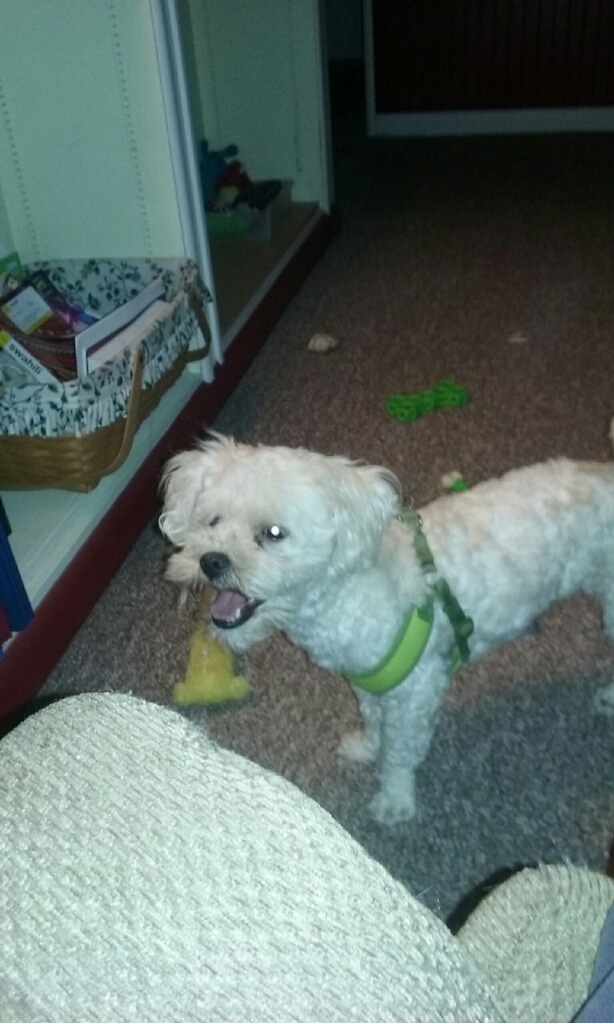 Now this past Friday, my mother's 14 year old cat died unexpectedly. My mom has been beside herself- meanwhile before this happened she was working on my stepdad for doggy number 2. Well guess what- stepdad went to the SPCA and got her the next dog she had been eyeing. He is the same age as Oliver, and is a poodle mix his name is Bentley, but I think they are going to rename him Oscar and stepdad is running around calling them the Oh Boys lol! This dog was left at the SPCA because his owners "didn't want to take care of him" anymore (I'm a fan of their fb page so I see them all the time too). My mother is still at work so she has yet to go home to see him (they took Oliver to the SPCA did a test run on Saturday with Bentley/Oscar at the dog park and they got along great- but my stepdad played the "still not convinced" role to fake her out) so she is crying but all the videos and pics they are sending me are making me cry too! Problem is I work the front desk while my mother is a HHA and watches Old people all day! Her patient is sleeping, so she is a bawling mess, and I am too but I have to try and hide it while people are in and out lol. I'm so happy she has her new furbabies