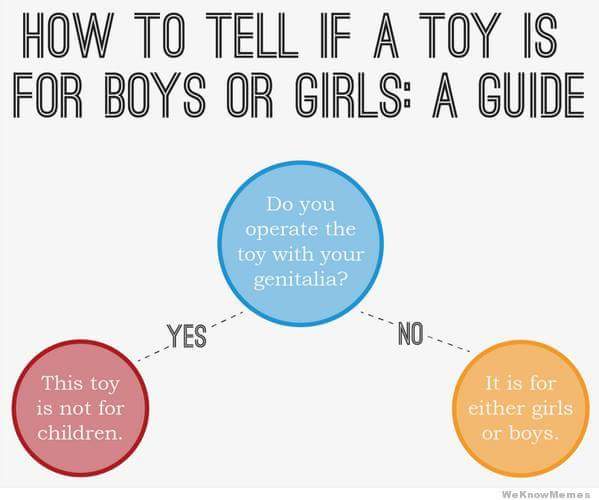 This popped up in my Facebook feed. Found it funny. I don't care what my children choose to play with as long as it's age appropriate and makes them happy.
