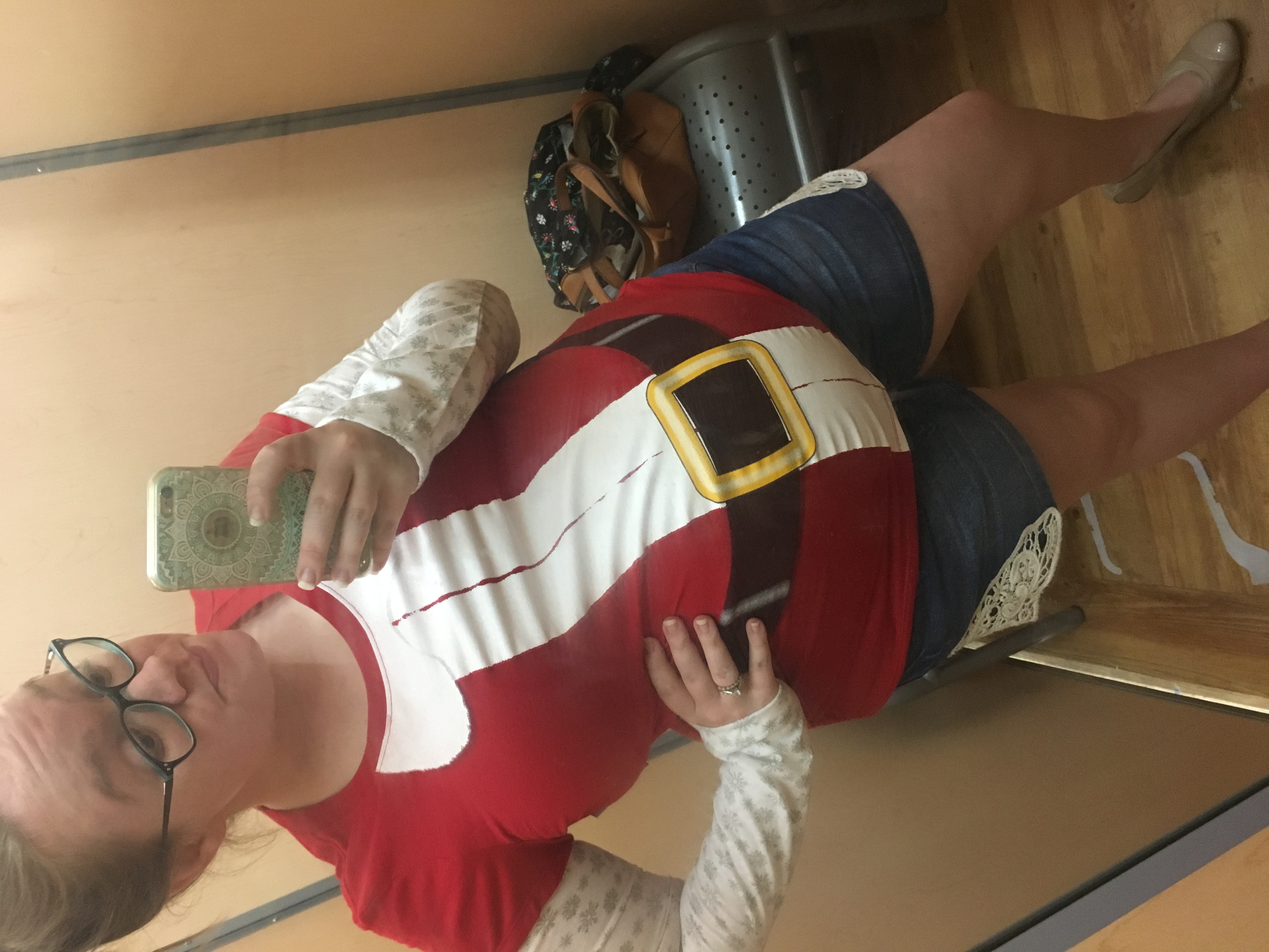 My shirt did not turn out that well once I put it on. No one sells maternity Christmas shirts (rude) and I not have time to order one since the party is tonight. UGHH
