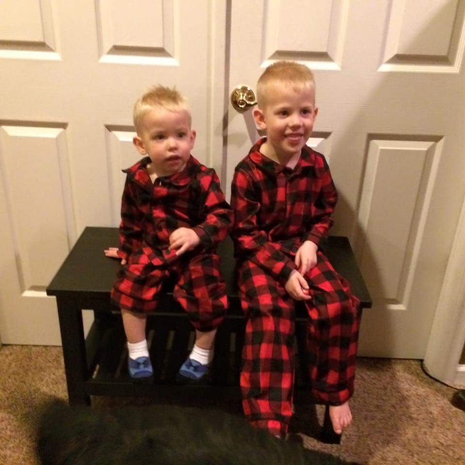 My boys are at their grandparents house tonight. My mom got them matching PJs. And commense this hormonal mama's tears. And holy crap my boys look so much alike!