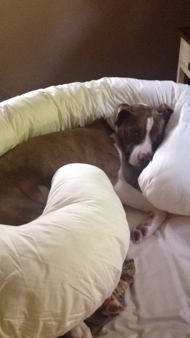 This is my 12 year old lab/pittie mix, Lily. Aka Latrell, little little, and Lilith.