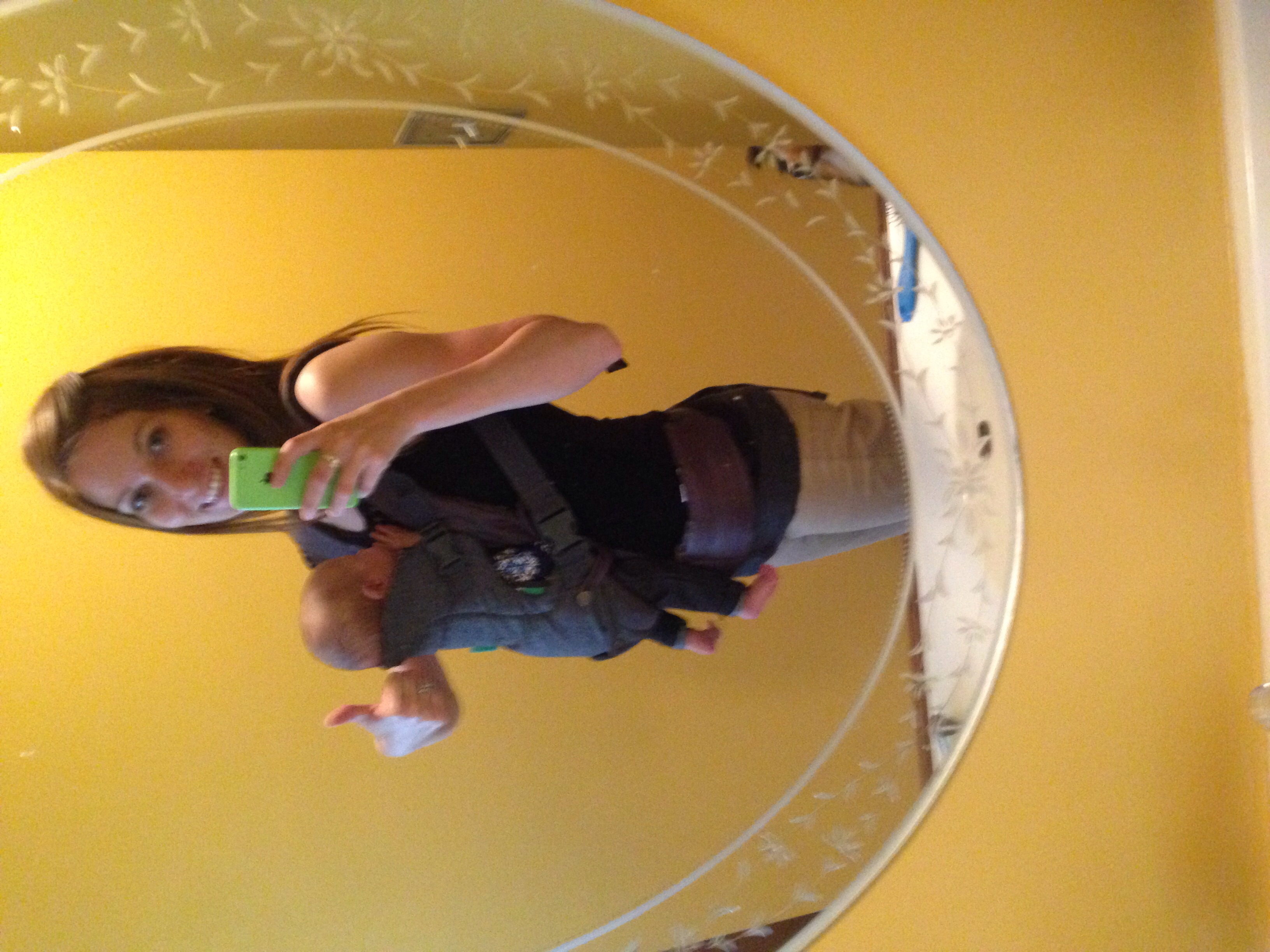 • ... when the only way you can get housework done includes baby wearing. (Thankfully her twin sister was happy in her bouncer seat!) I was able to fold 3 loads of laundry and chop up a salad for dinner with her!