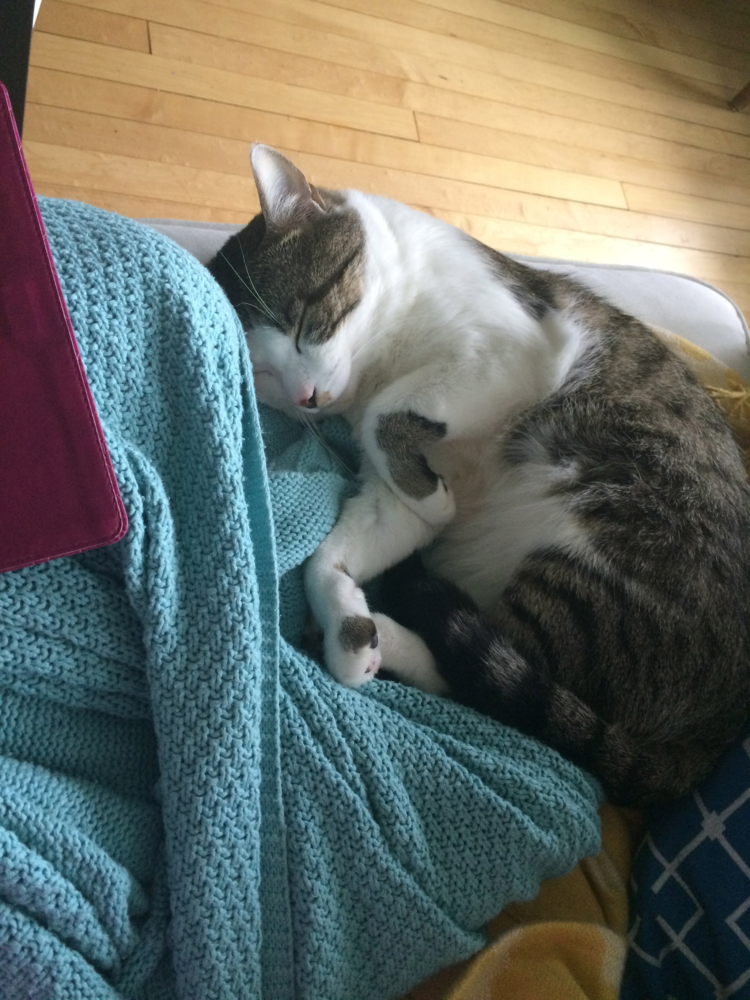 Zaphina is our 8 year old part-Siamese, double-pawed, queen of the castle.