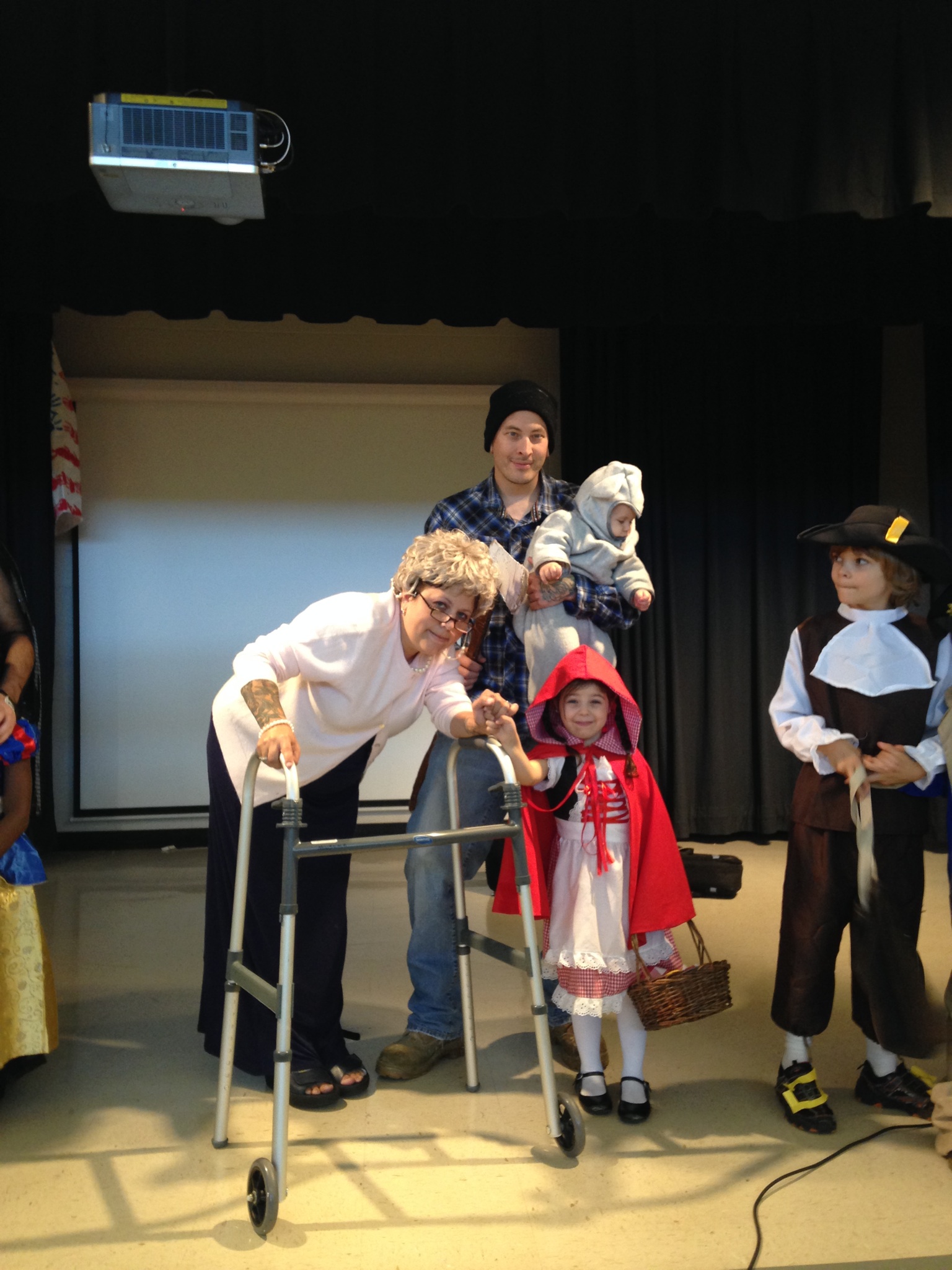 Picture of us last year. DD1 little red riding hood, DD2 big bad wolf, me I am grandma, DH woodsman.