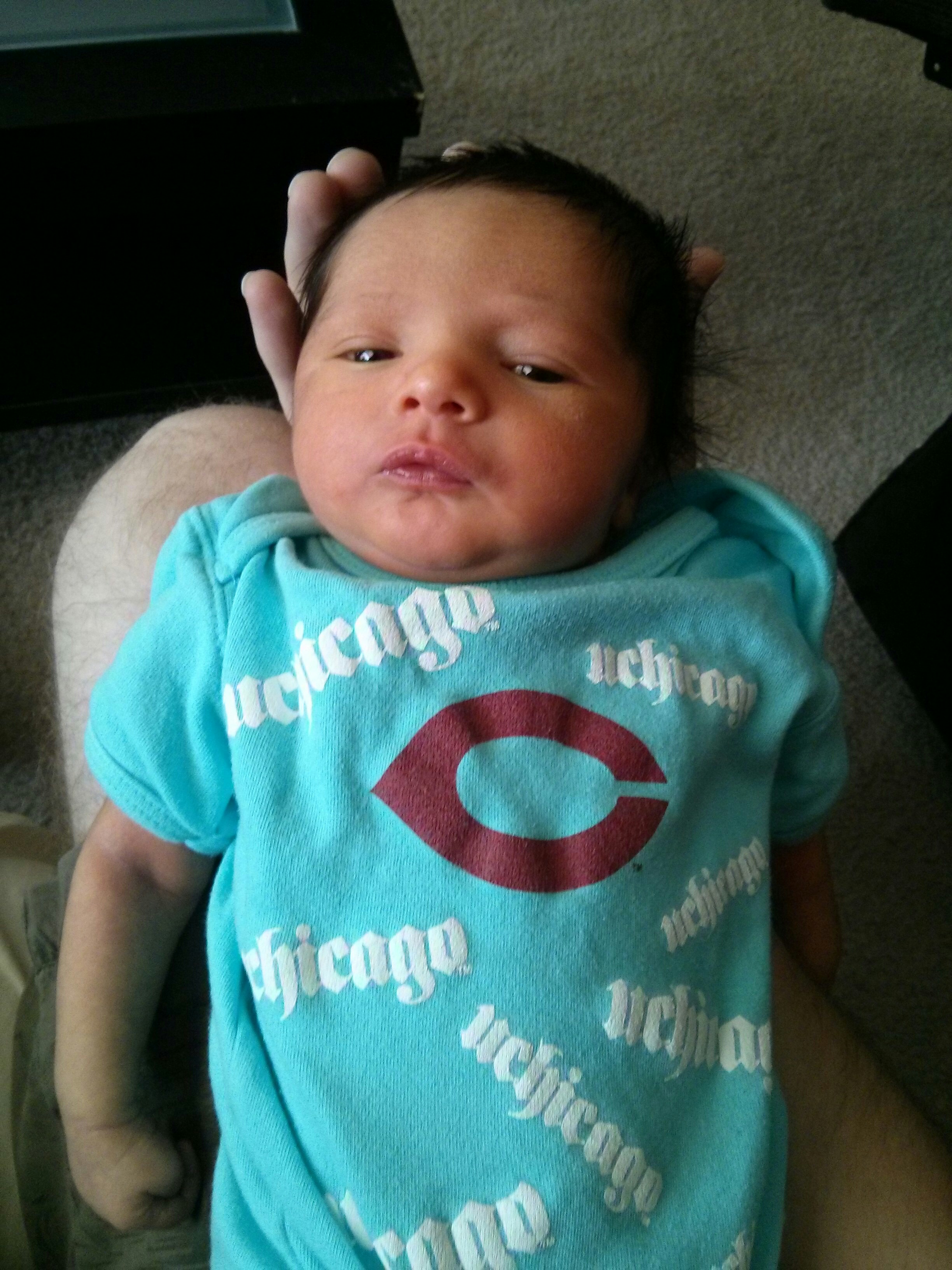 Due to high blood pressure, I was induced starting around 7pm on September 7 (Labor Day). Twelve hours later there was no change in my cervix. That's when they started me on pitocin to speed things along. Around 2 pm there was a sudden decrease in infant heartbeat and the only way to keep it up was to lie directly on my left side. It looked like a C section was eminent but when the nurse checked again, my dilation was complete! That's when things really started to happen. 15 minutes later, and a good bit of pushing, Lily was born. It turned out her cord had gotten wrapped around her neck and that's why when I changed positions her heat beat had dropped. Tests revealed that minus a bit of jaundice, she was healthy! Unfortunately, I was not. 48 hours after going into labor, I developed post-pardum preclampsia (a very rare condition) and had to be hooked up to magnesium sulfate for 24 hours and despite being on medication, my blood pressure remains high (and may continue to do so for 6-12 more weeks). Nevertheless, all of us are now back home from the hospital and are doing well given the circumstances.