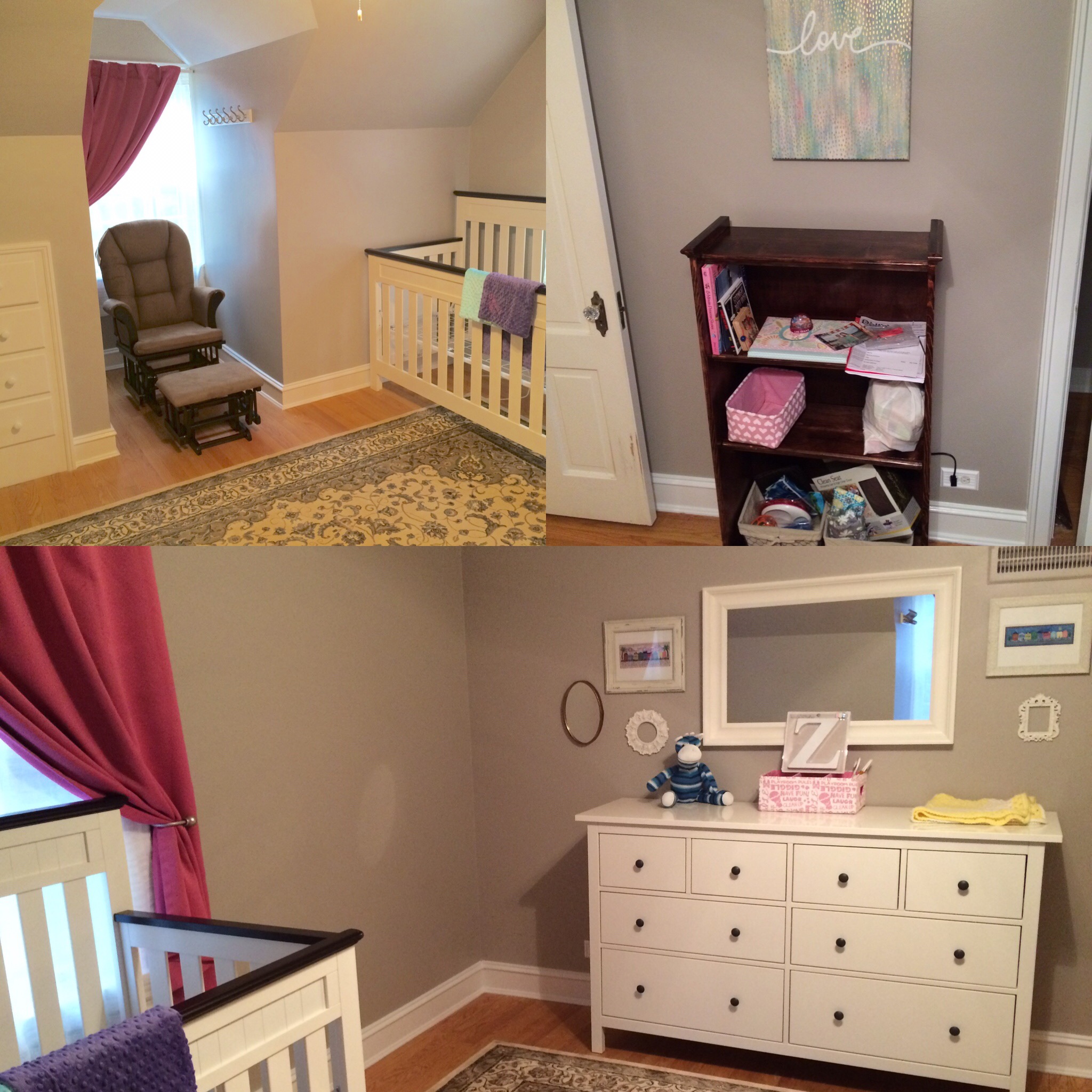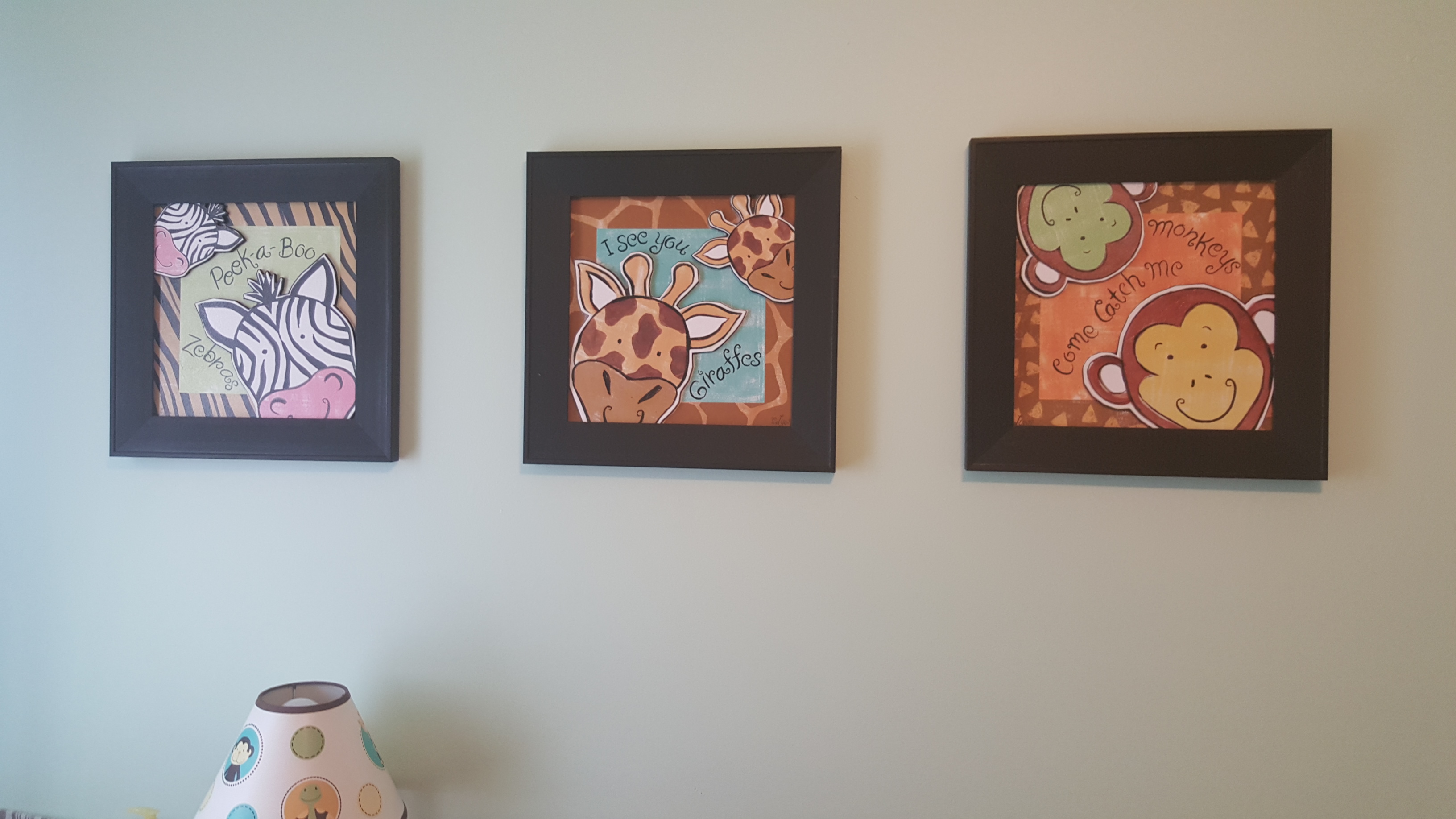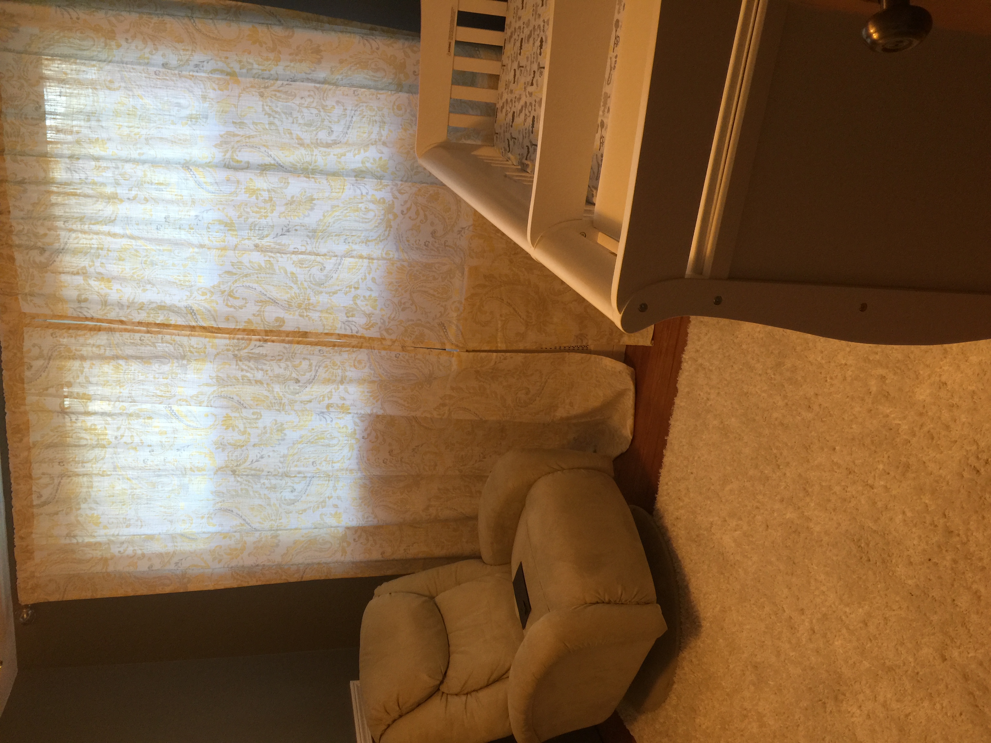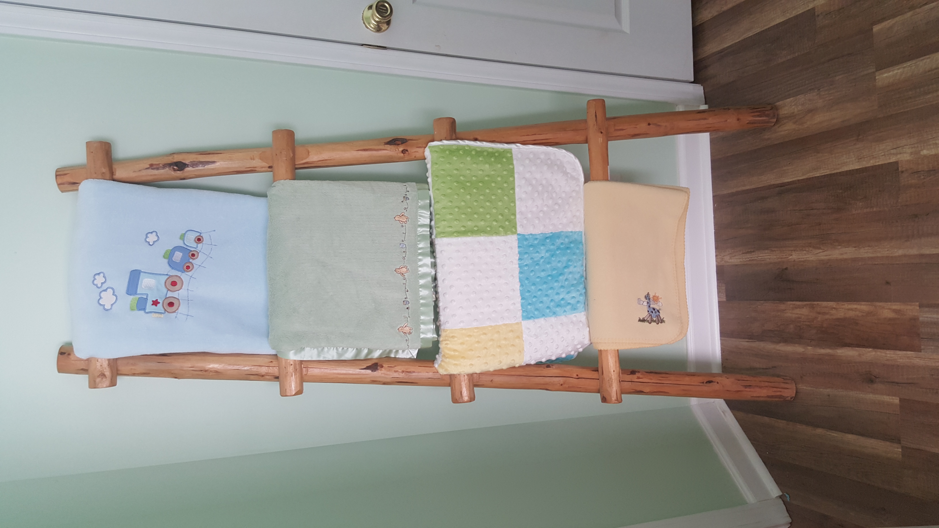 I don't have any wall decorations or anything but I like knowing if baby came early, this will do :-) the blanket rack is from my husband's childhood house. The crib is new but most everything else was a gift or thrifted!