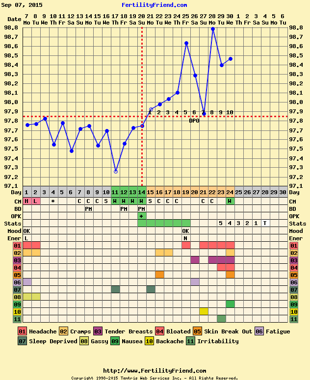 CD/DPO: 21/9 (although FF keeps changing my crosshairs every day when I note my temp, but that's the original and probably correct one)