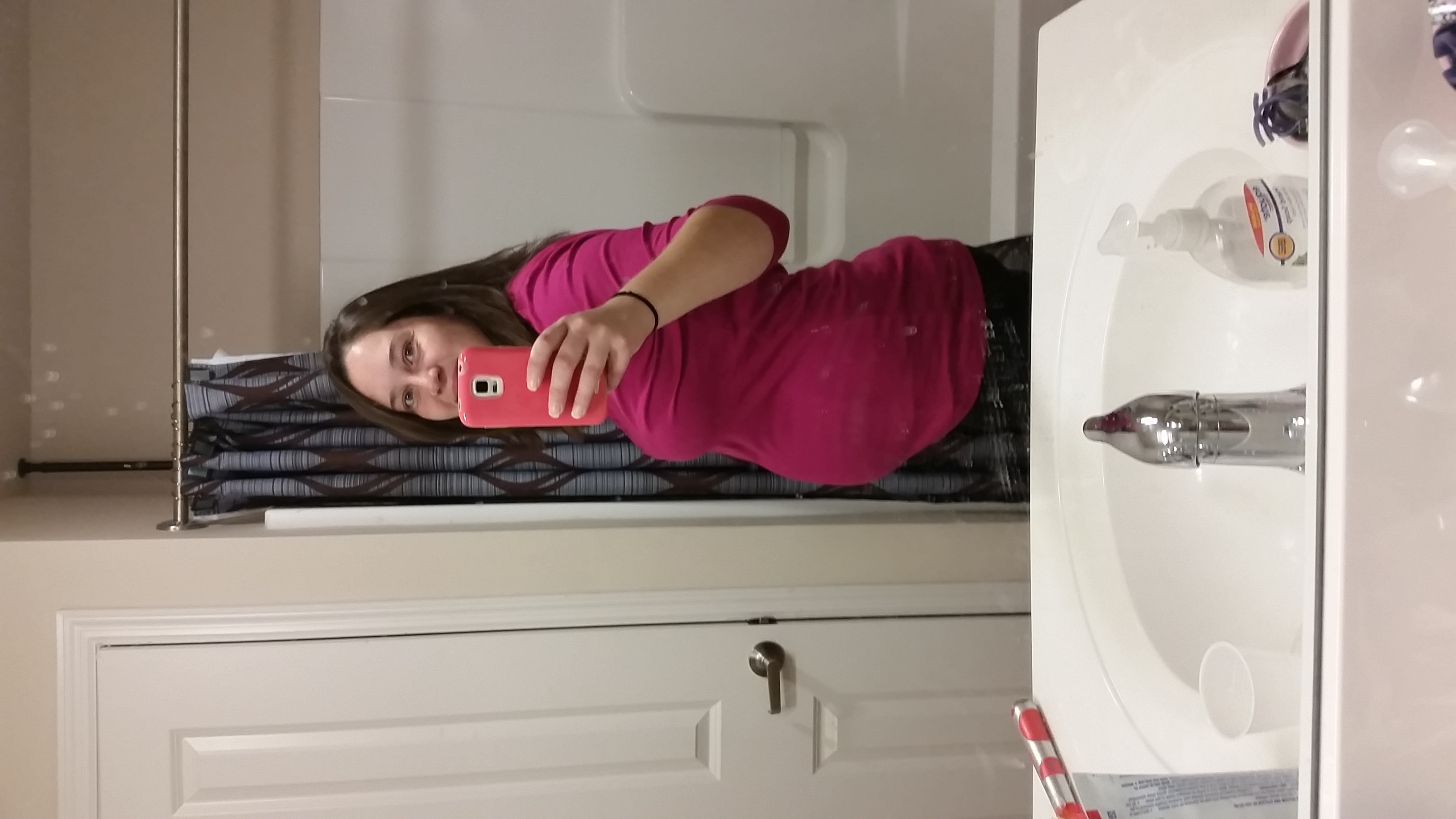 Here is my very first bump pic (posted) taken last Saturday...(at 19w3d) I ran away really quick while the boys were getting the hair cut and snapped a shot. I don't have a good body mirror in our house so I do what I gotta! This is baby #3 for me!