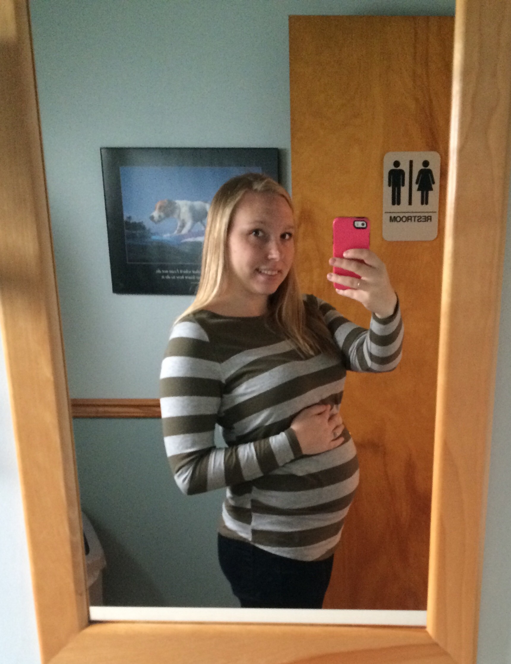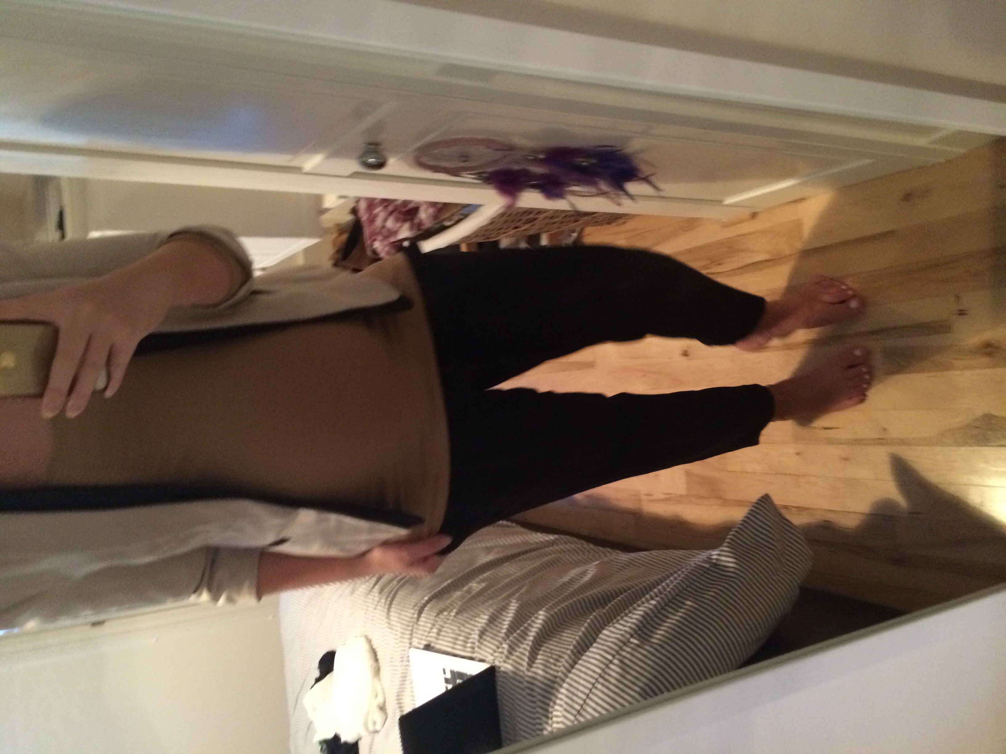 22 weeks and in workwear...these trousers are pre-preg but I had to change into black maternity jeans on my way to work because they were so tight on my hips they were hurting!