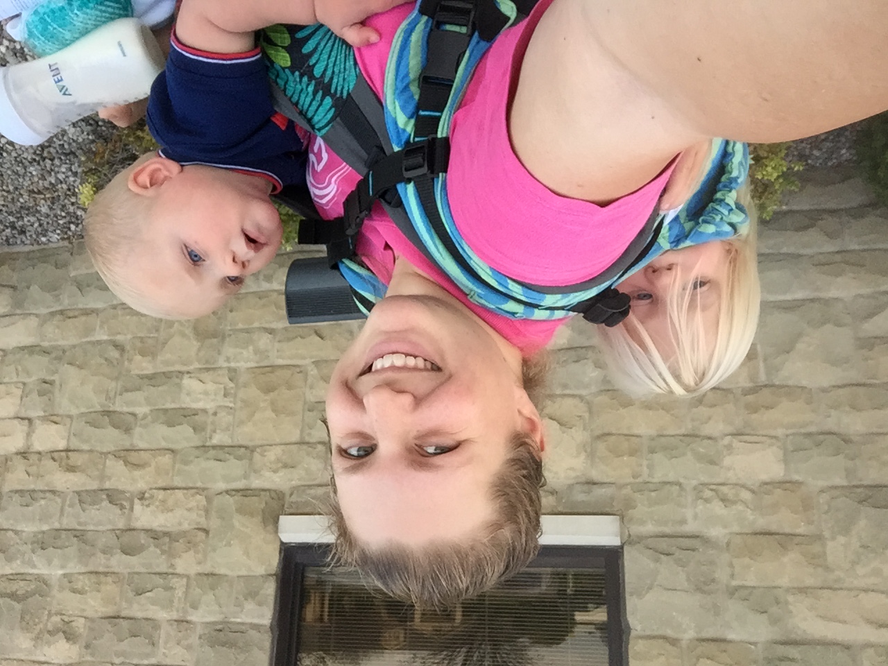 • Hard to see, but this is a Tula on Front and a Fidella Onbu (with an improperly possisioned toddler) in back!