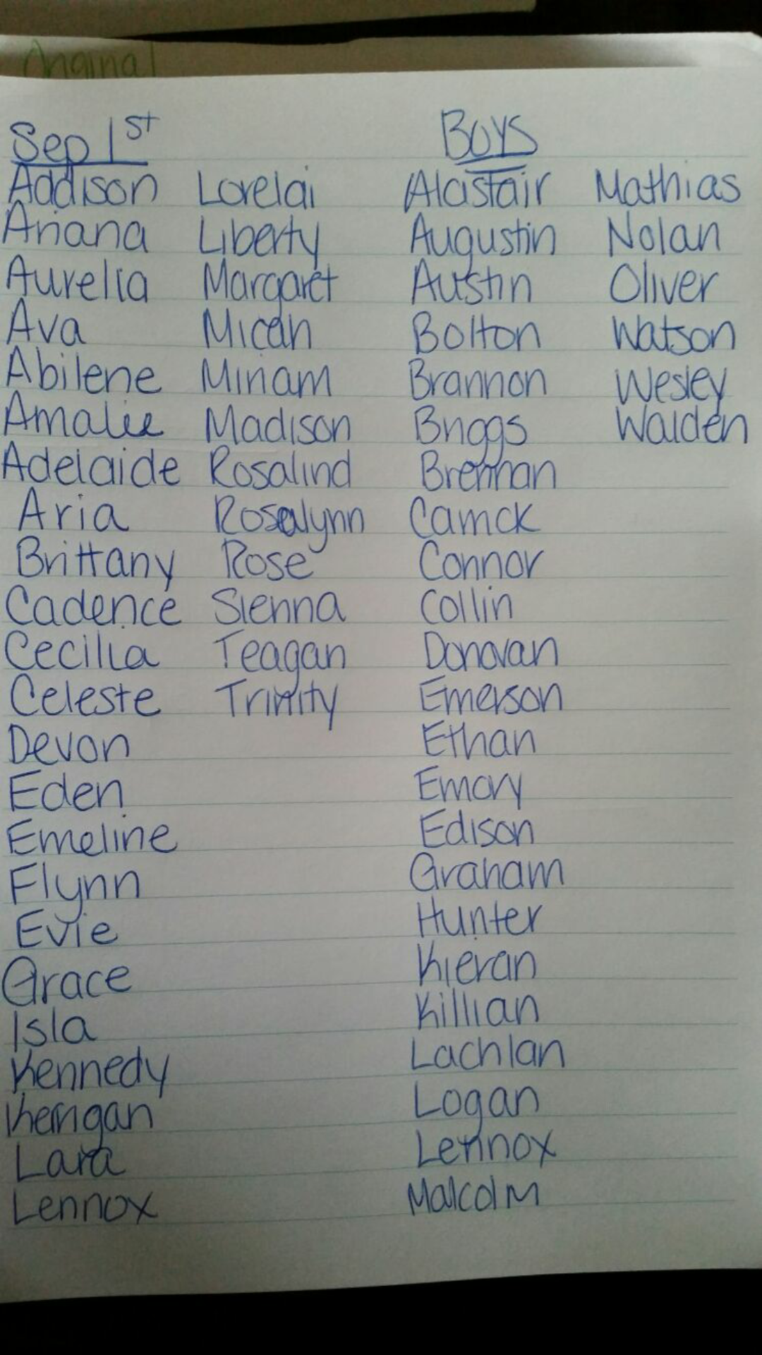 Recent contenders for a girl that were in the no pile are Caitlin, Emerson, Molly and Gianna
