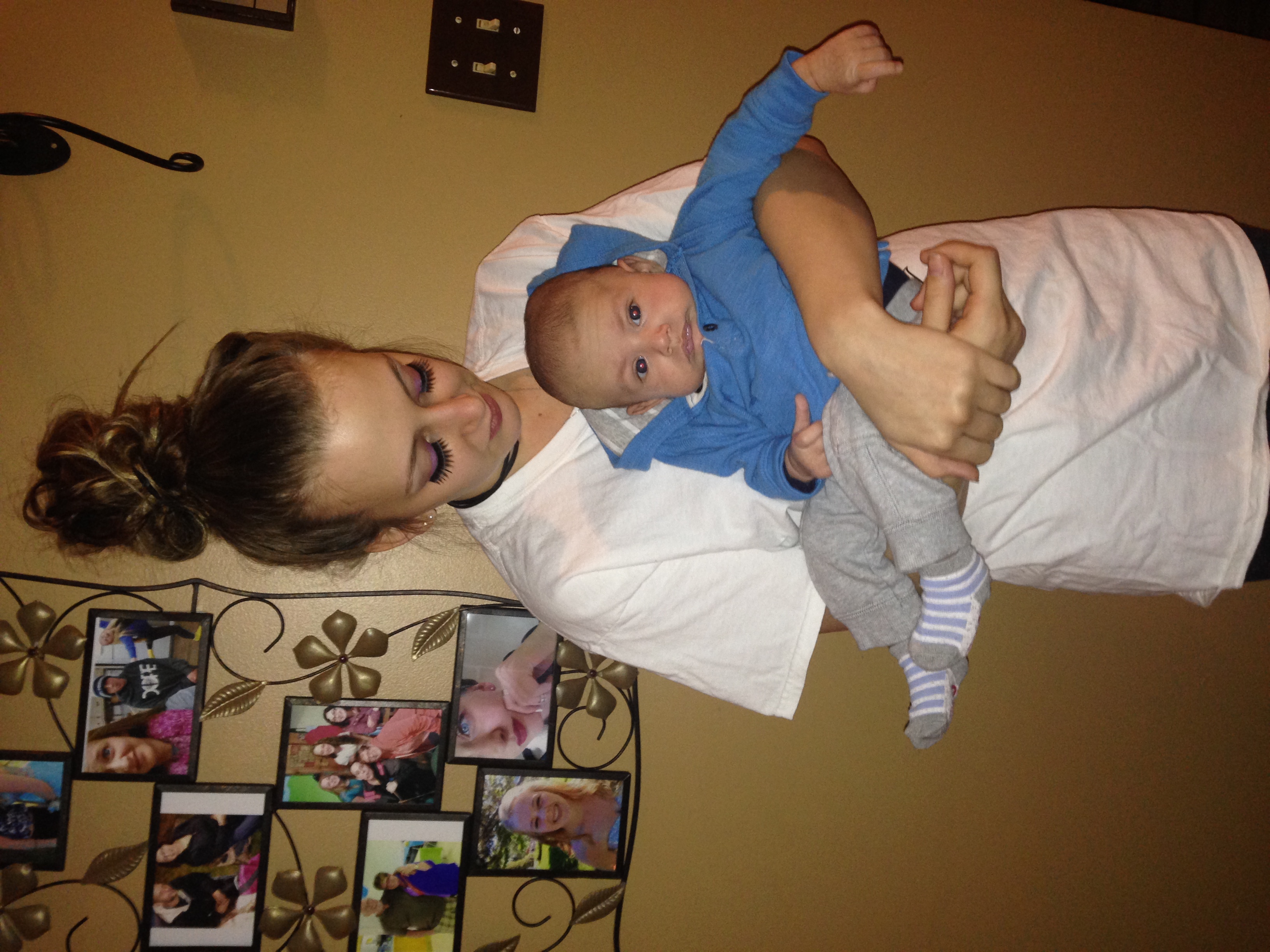 One week (approx 8 pounds) vs 6 weeks (approx 13 pounds!) I love my little chunky monkey!!!