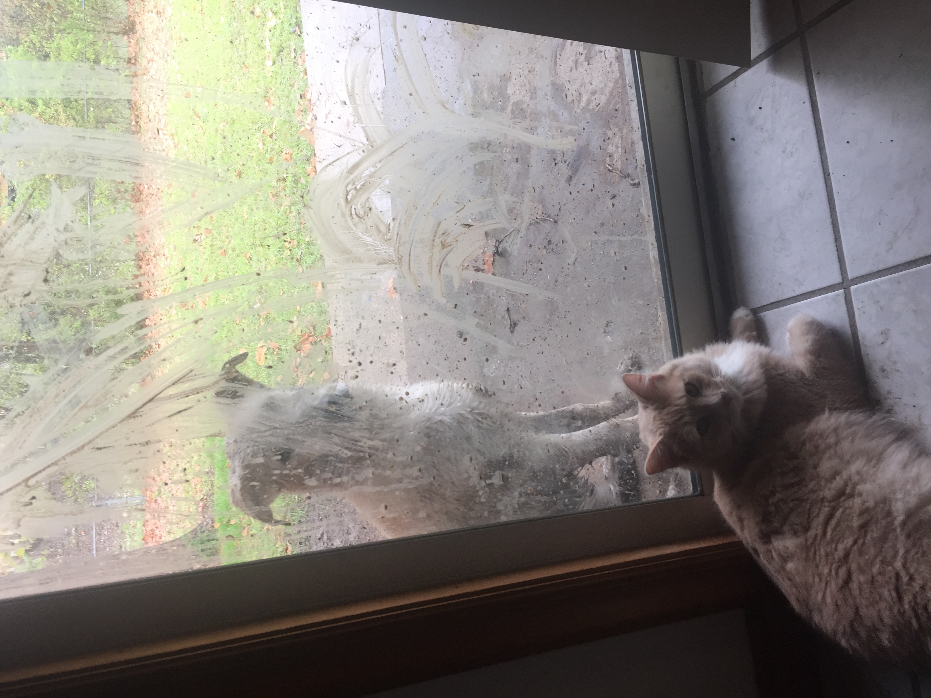 Photos for giggles, because I won't be smiling when I clean the sliding door. Also because the cat is a smug asshole and my pets are how I entertain myself.