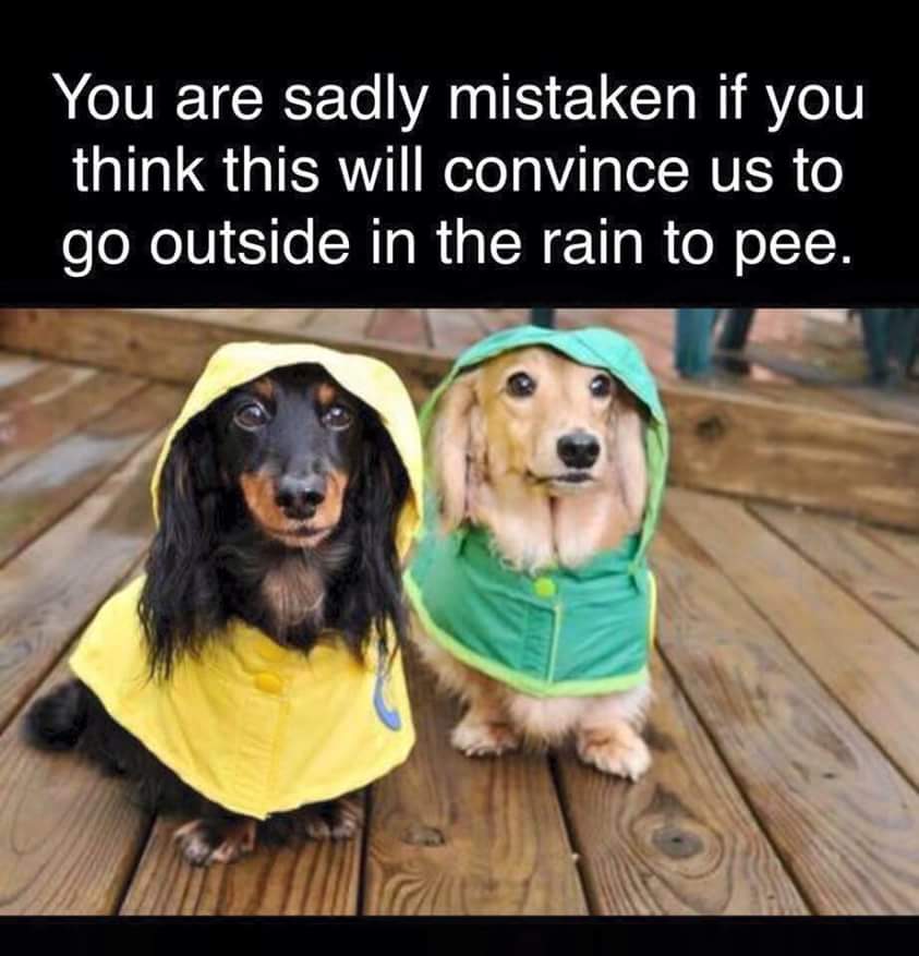 @sprocketsngadgets that sounds awful! My dogs refuse to go out and pee/poop when it rains too, then whine at the door because they have to do said activities. So frustrating!