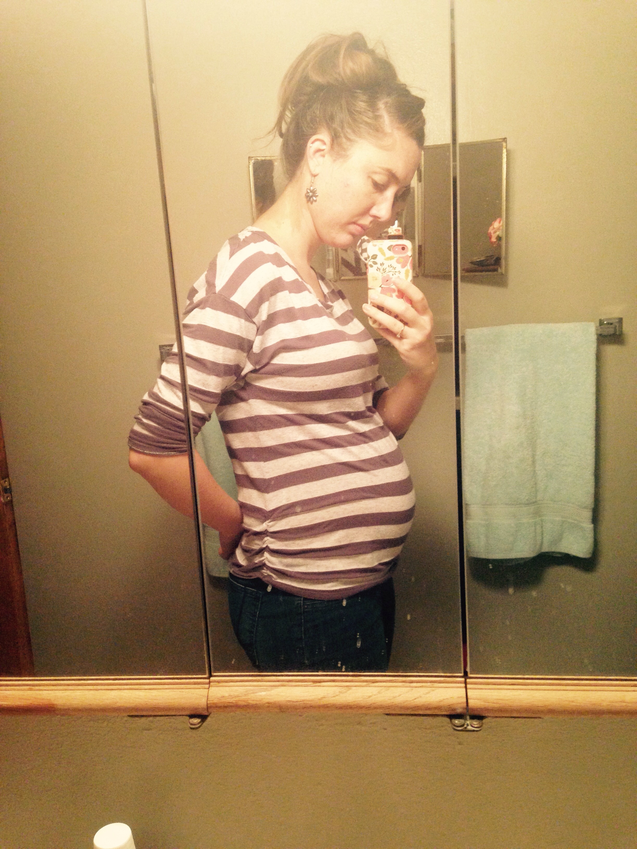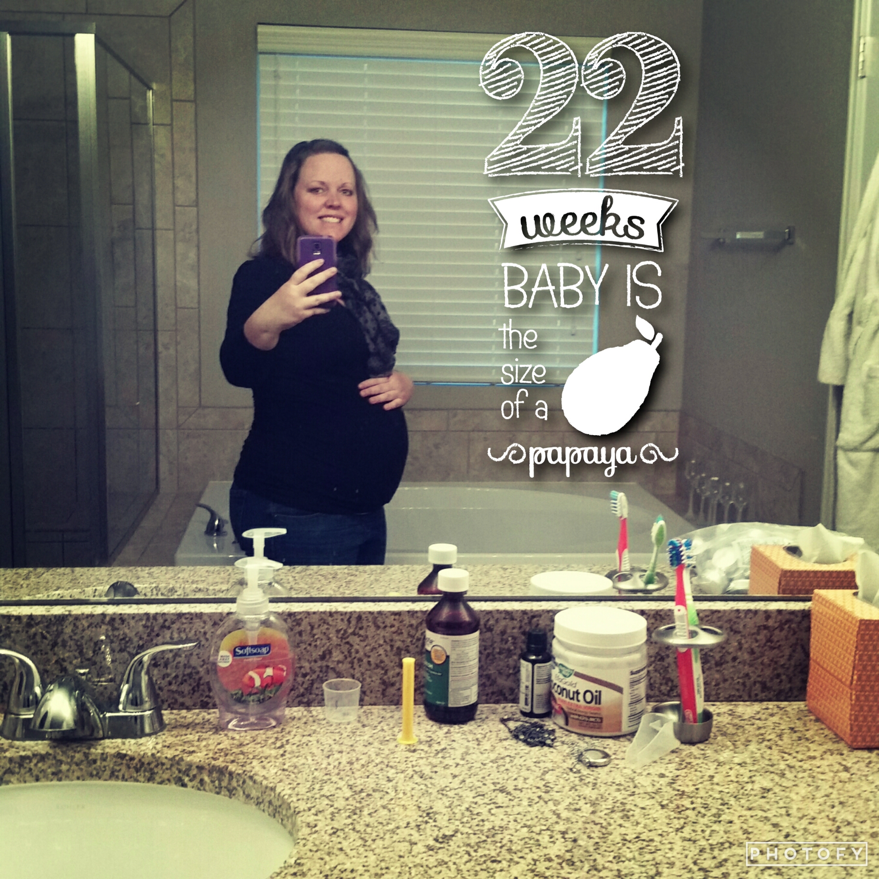 I swear this is going to be my biggest baby. My belly was never this big at 22 weeks in the past. Also I'll try and clean the mirror for next week. But no promises!