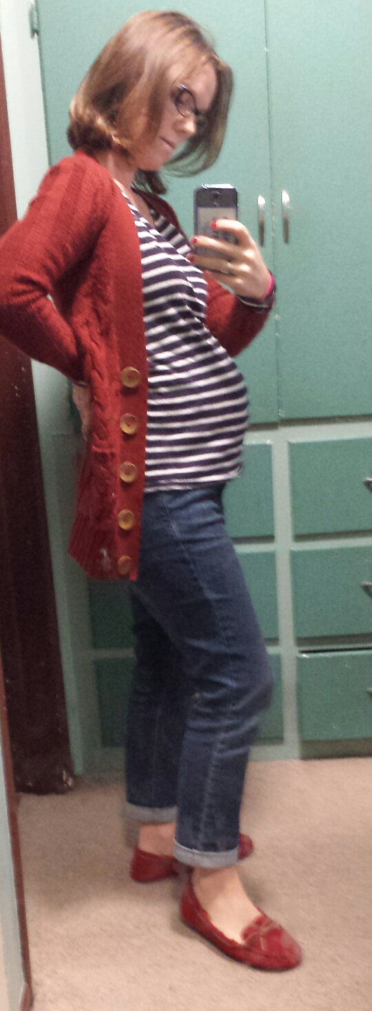 DD2 refused to cooperate again. I was feeling kind of small on Sunday when we took this picture (21 weeks), but I've been having a ton of stretching/growing pains the past couple days, so I'm sure I'll be huge soon.
