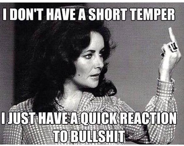 Oh yeah, short temper for sure. Especially with my dogs. I can see/hear myself getting irrationally frustrated, and I can tell myself they're just dogs, but for the love of gawd, I just wish they'd sit the eff down and stay while I put their damn leashes on! Fffffff$&k!