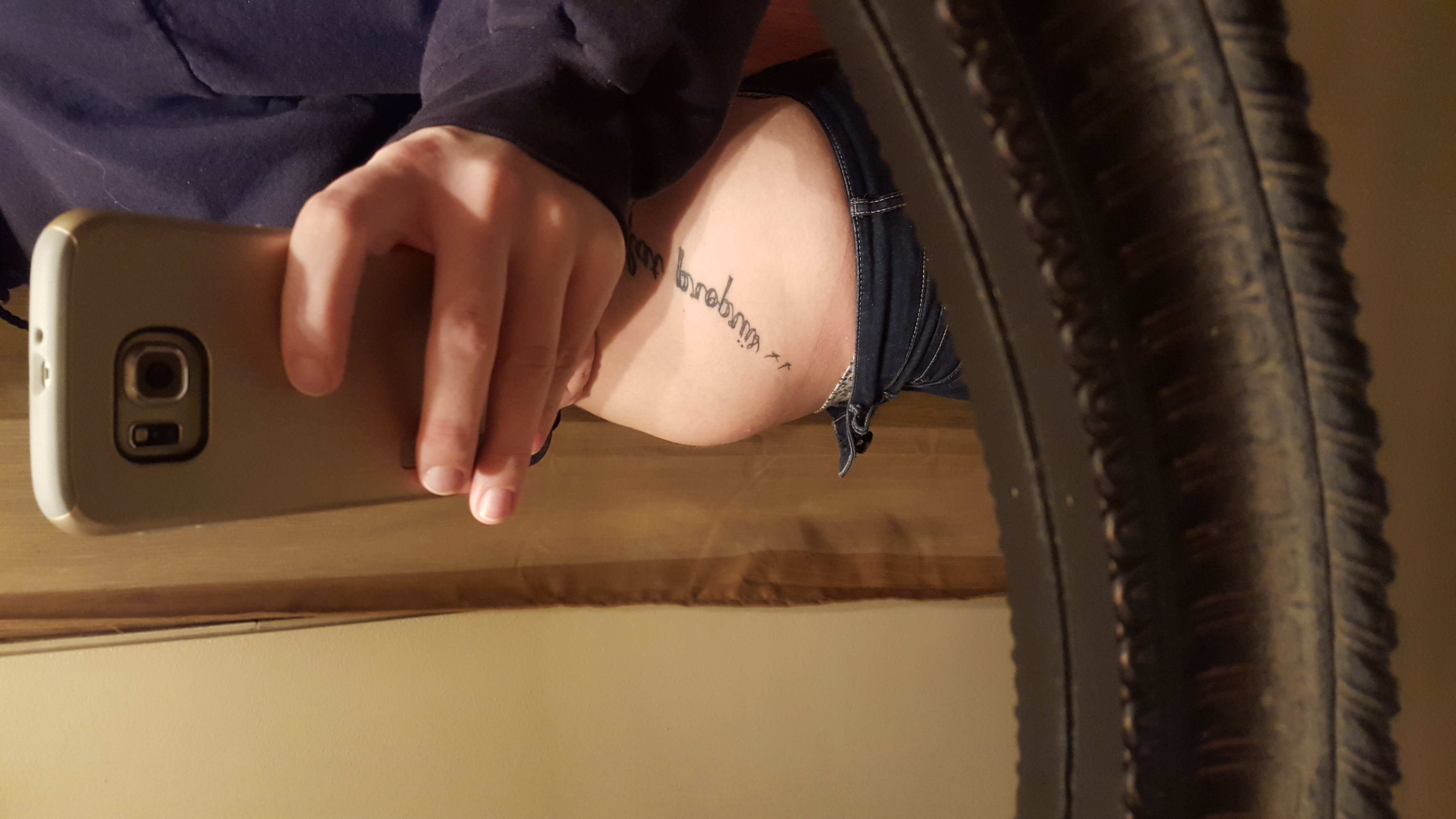 Excuse the crappy quality photo and mirror that desperately needs cleaning. Not much there, but compared to a few weeks ago I definitely have a little something.