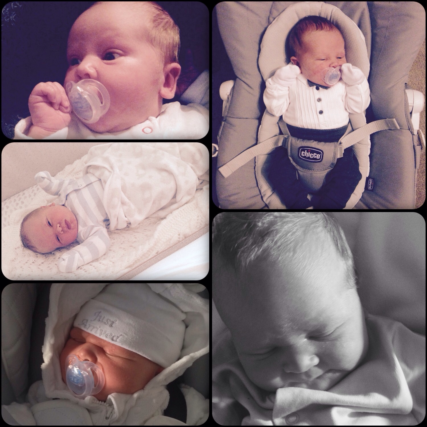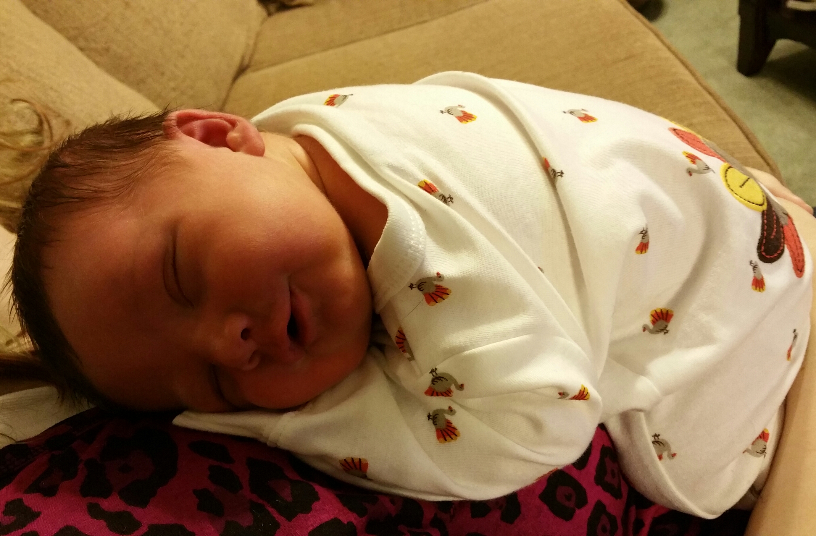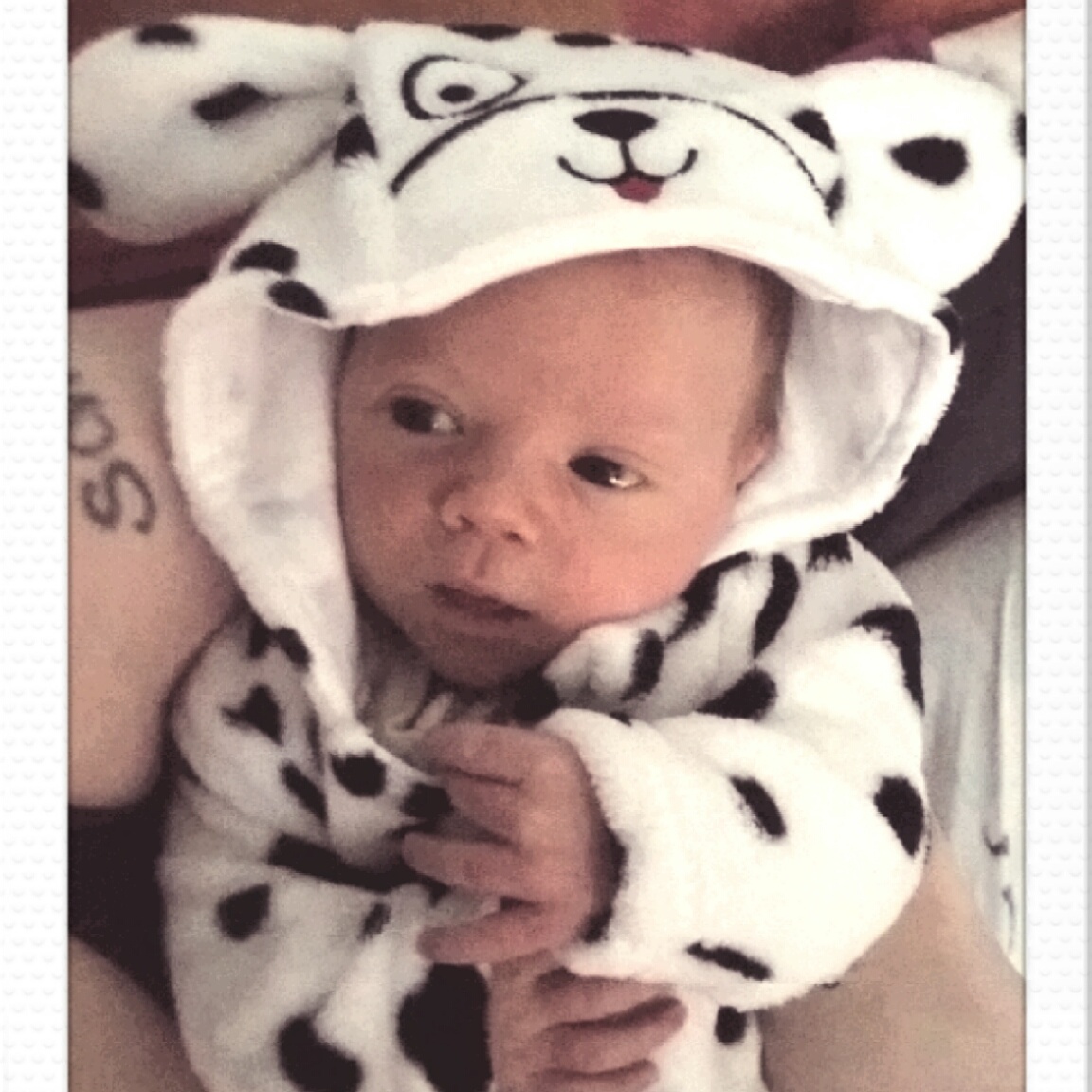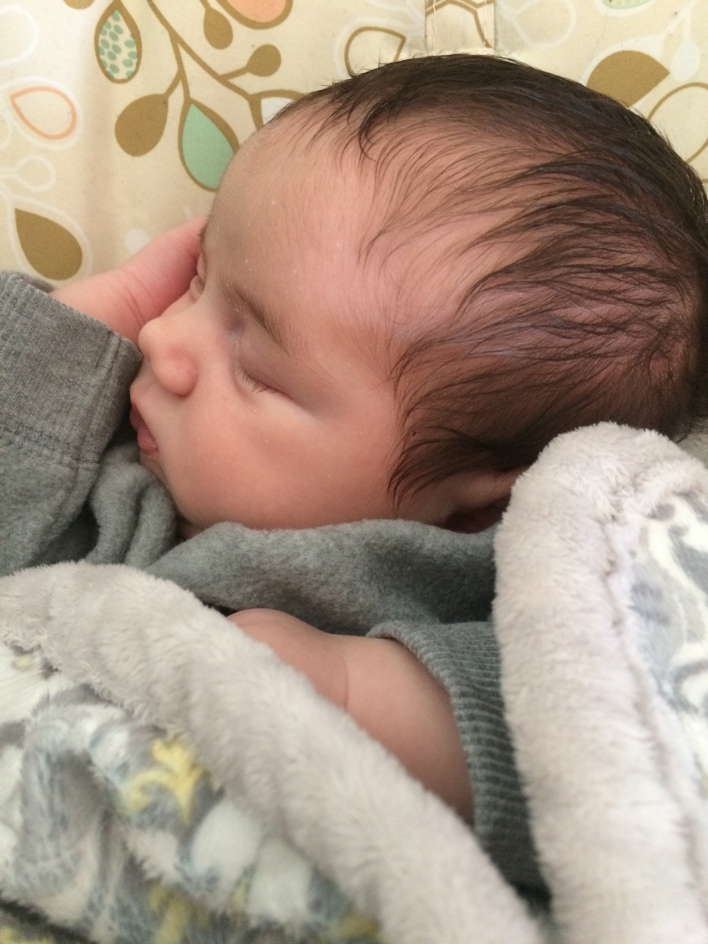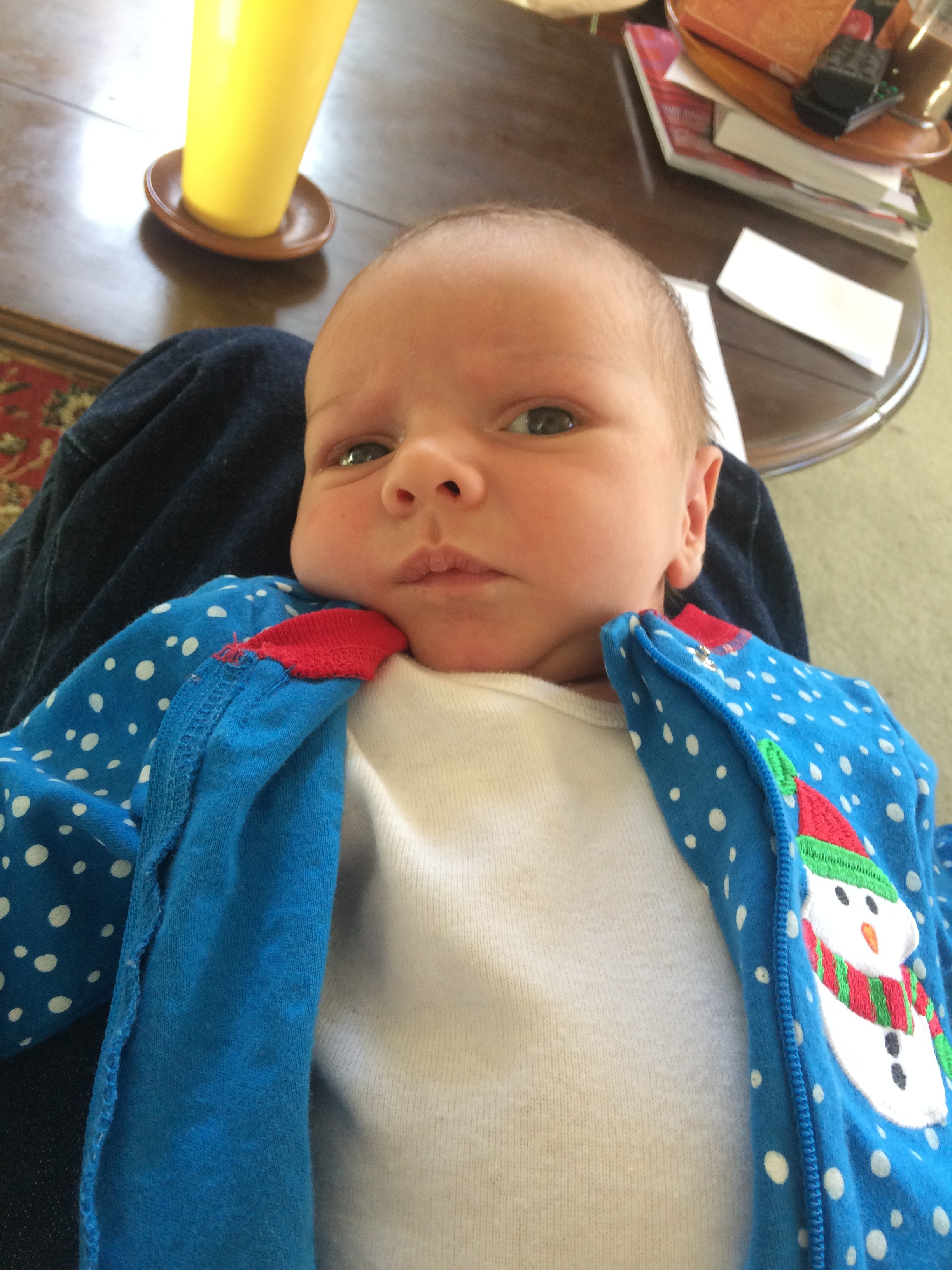 We are getting pictures of the kids done on the 5th so I don't have any professional ones yet, but here is one that I took of my little guy on Thanksgiving. I can't believe that he'll be a month old tomorrow, it went by so quick! He's starting to show more of his personality now and it's amazing.