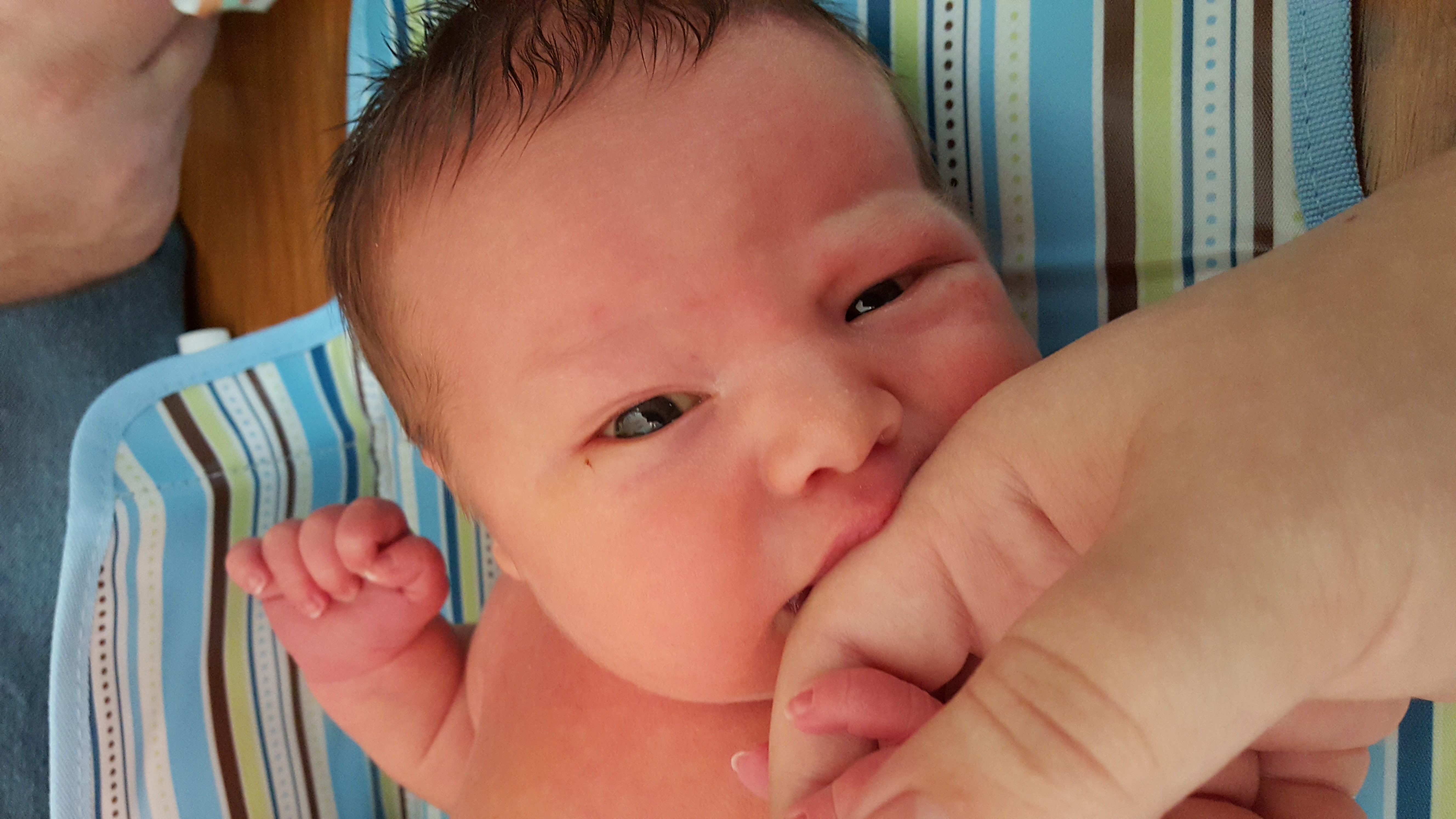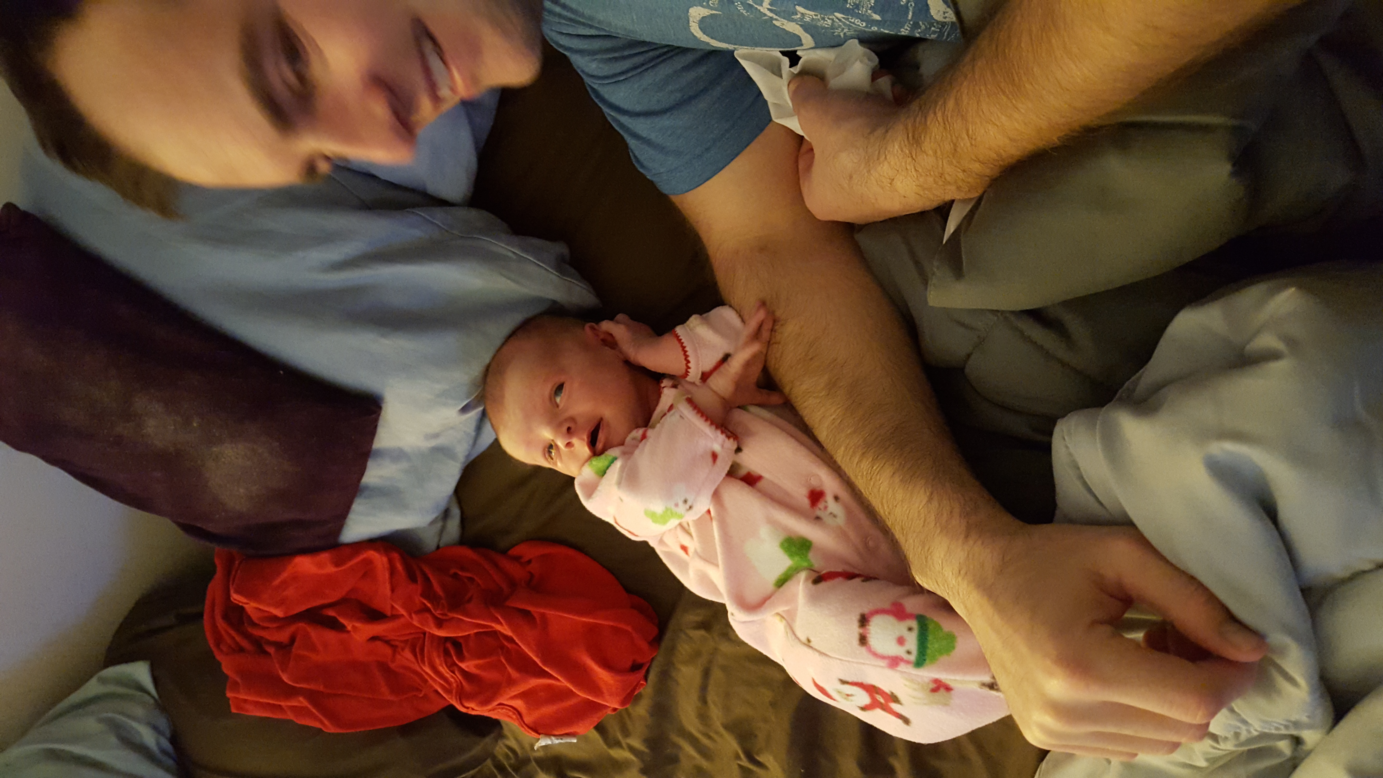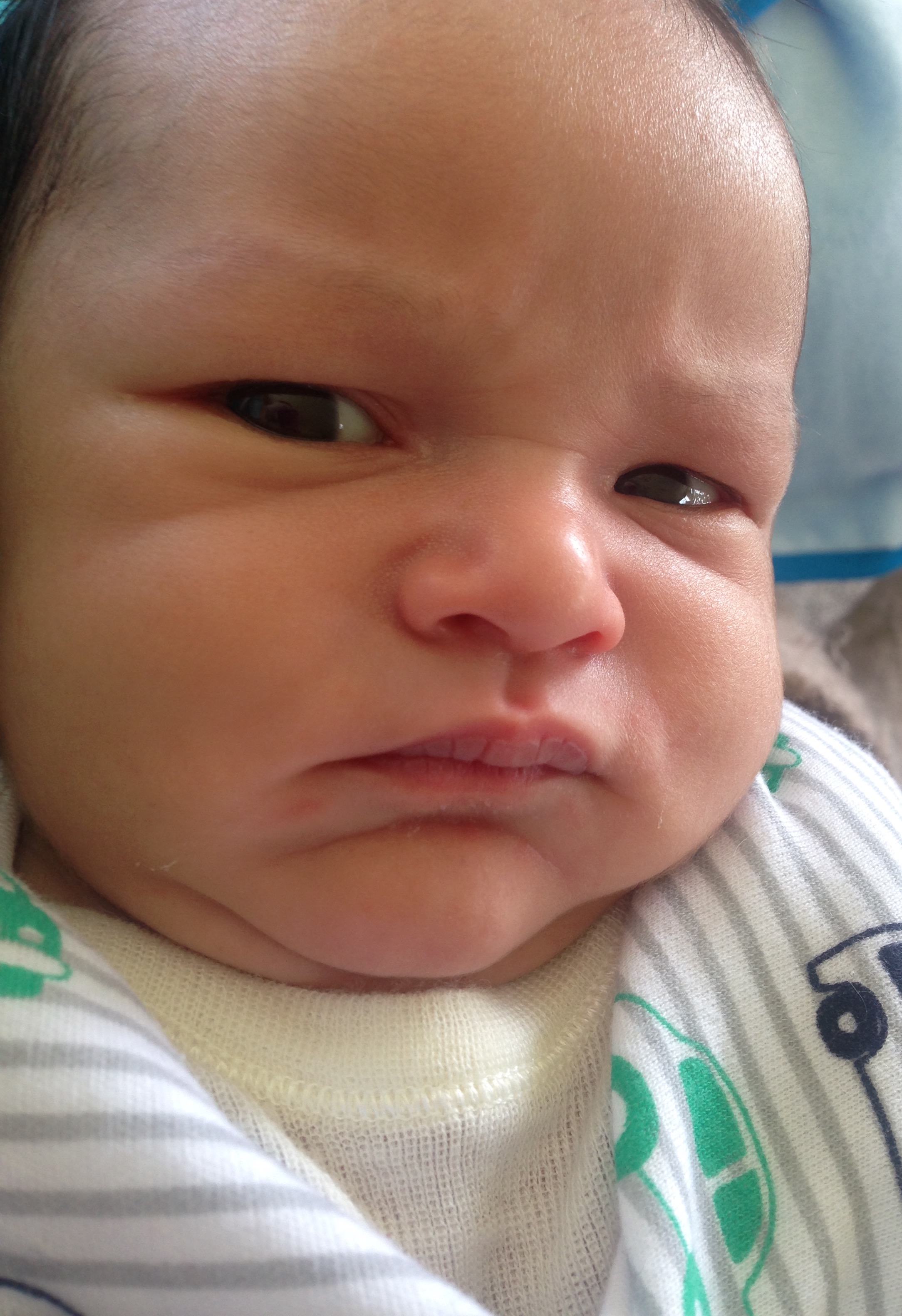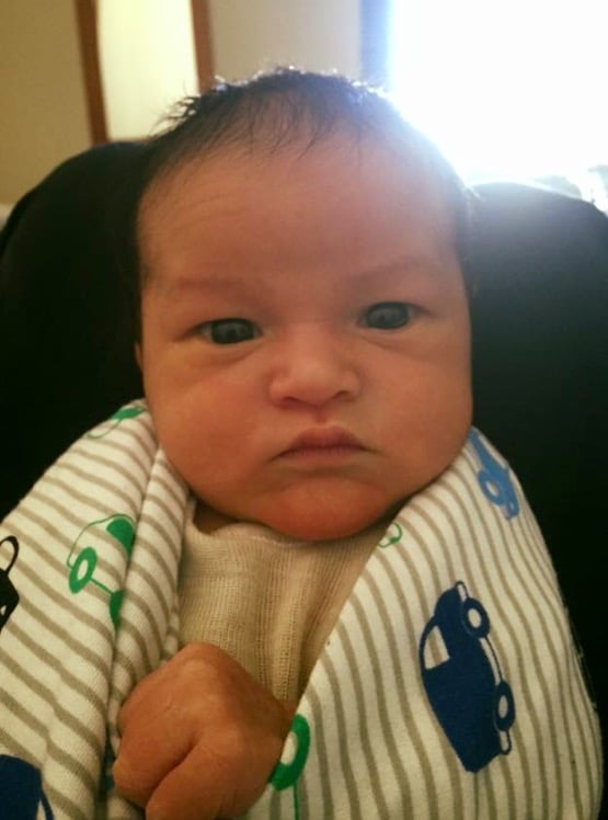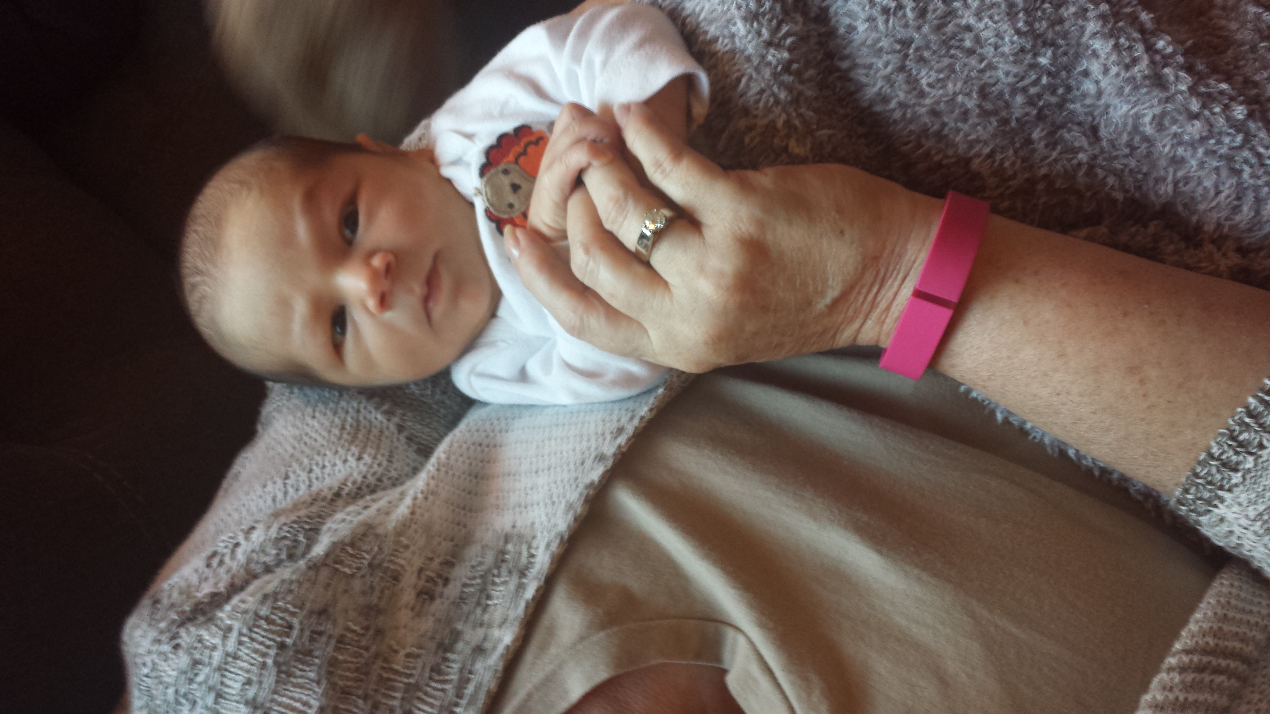 We are getting pictures of the kids done on the 5th so I don't have any professional ones yet, but here is one that I took of my little guy on Thanksgiving. I can't believe that he'll be a month old tomorrow, it went by so quick! He's starting to show more of his personality now and it's amazing.