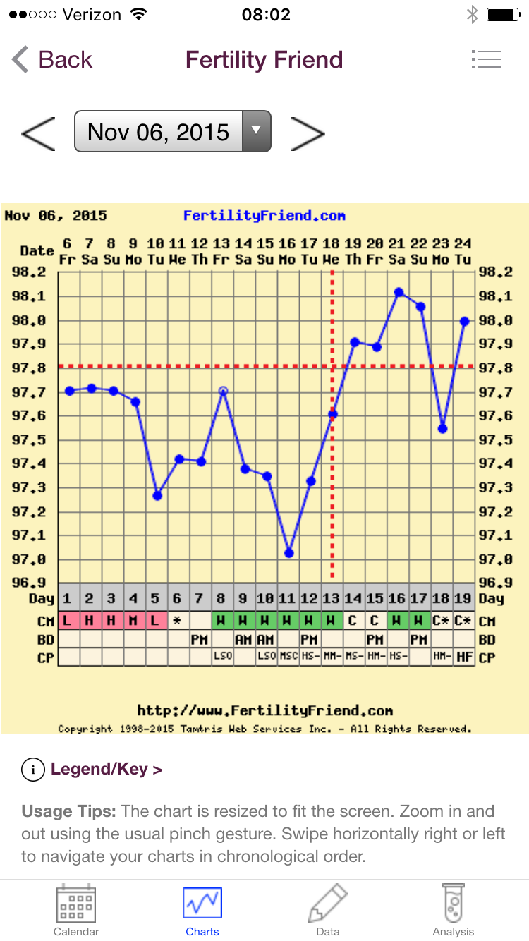 Here's my chart for anyone who wants to take a look. My positive OPK was at 5pm on what FF is calling O day, so I really think it was the next day.