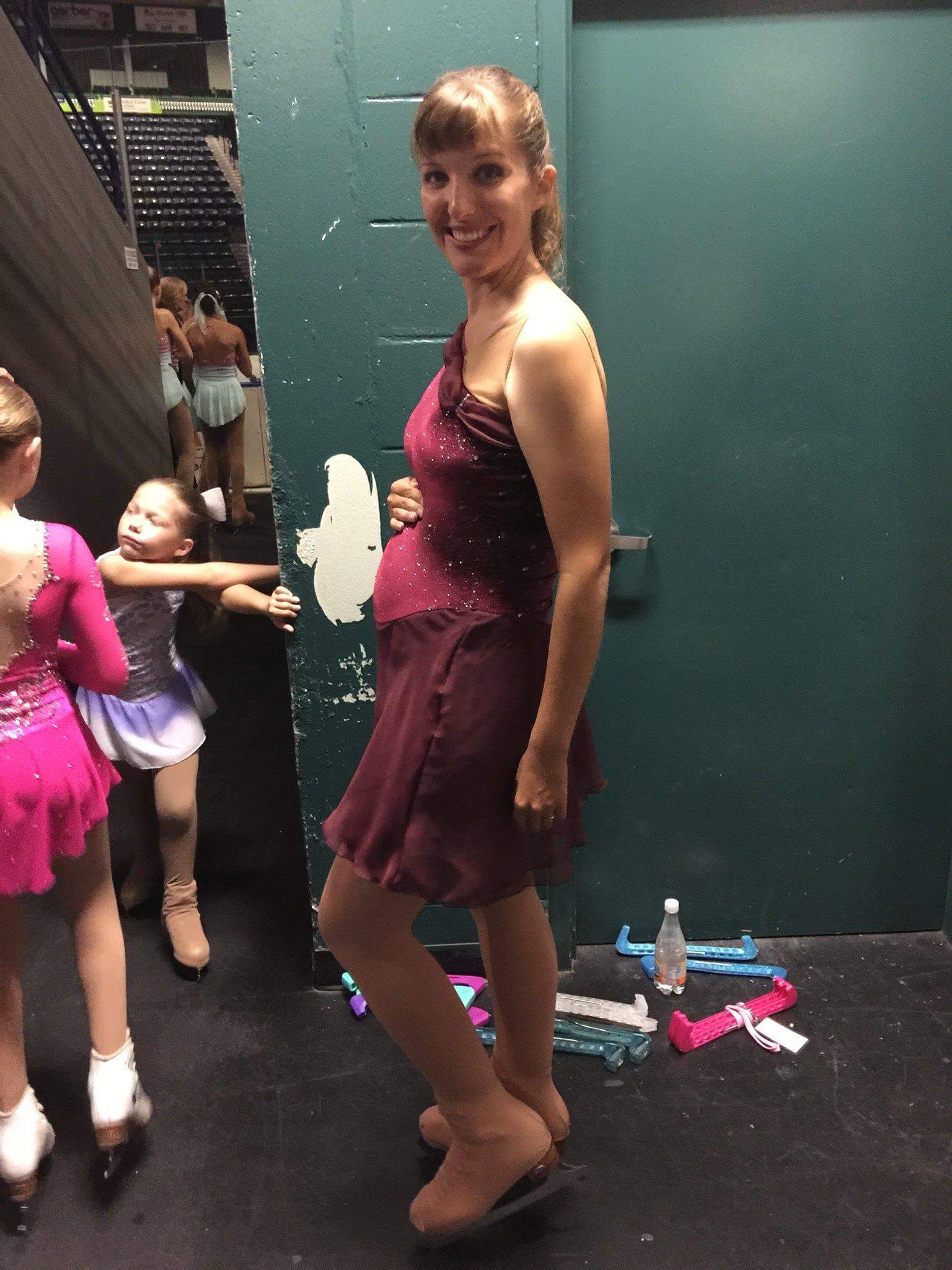 Below me at 16 weeks at a charity skating show. Little did I know how soon the dr was going to take even that little bit away from me.