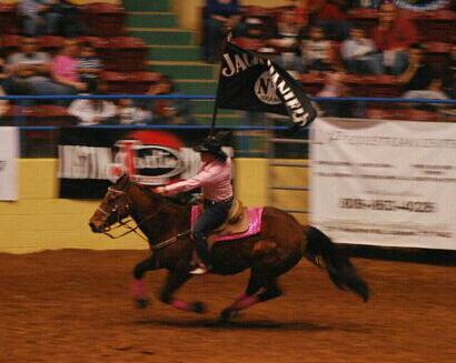 • This isn't a barrel racing pic, but I also carry sponsor flags. This was at a local ABC rodeo here in Lubbock TX.