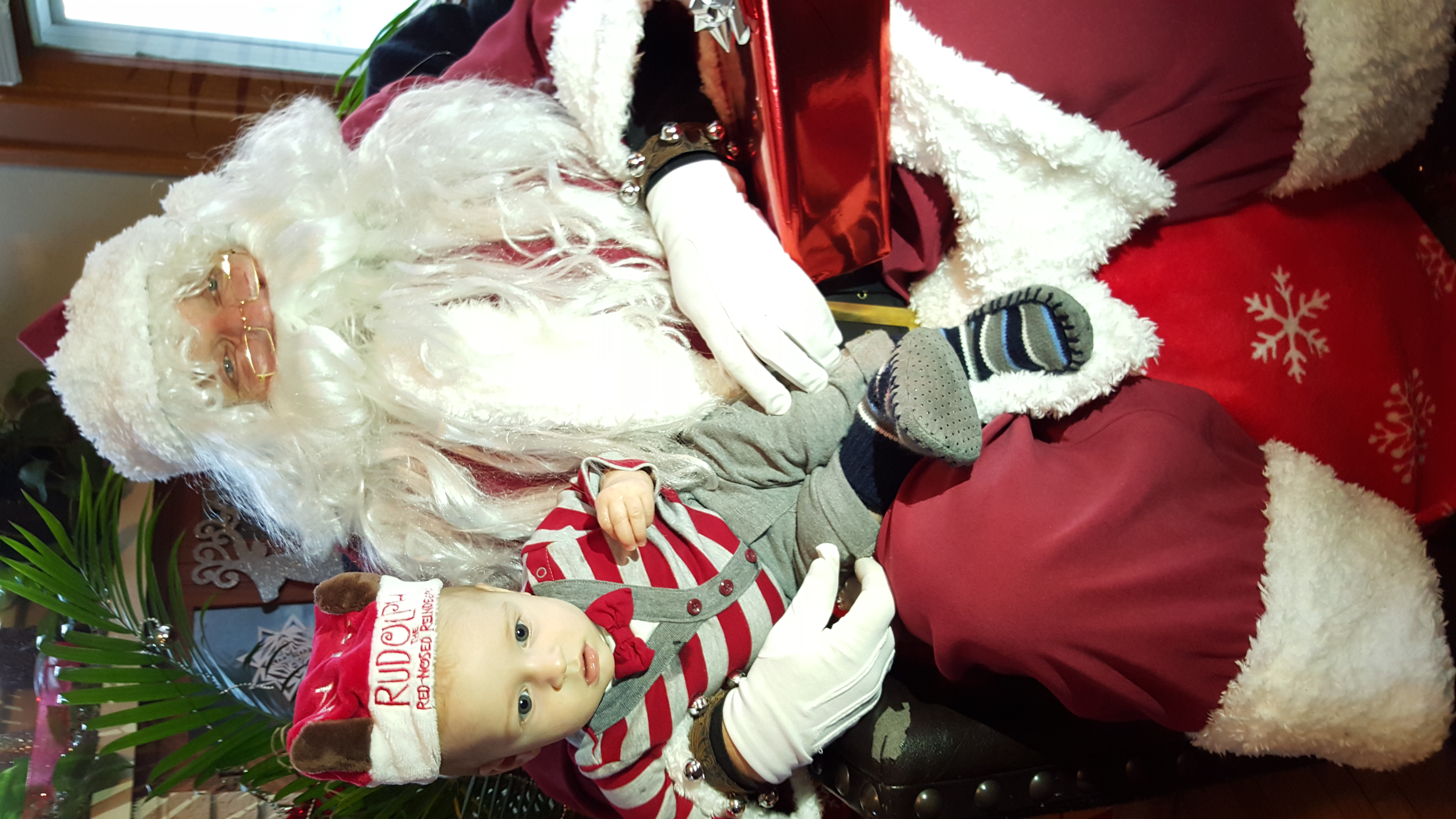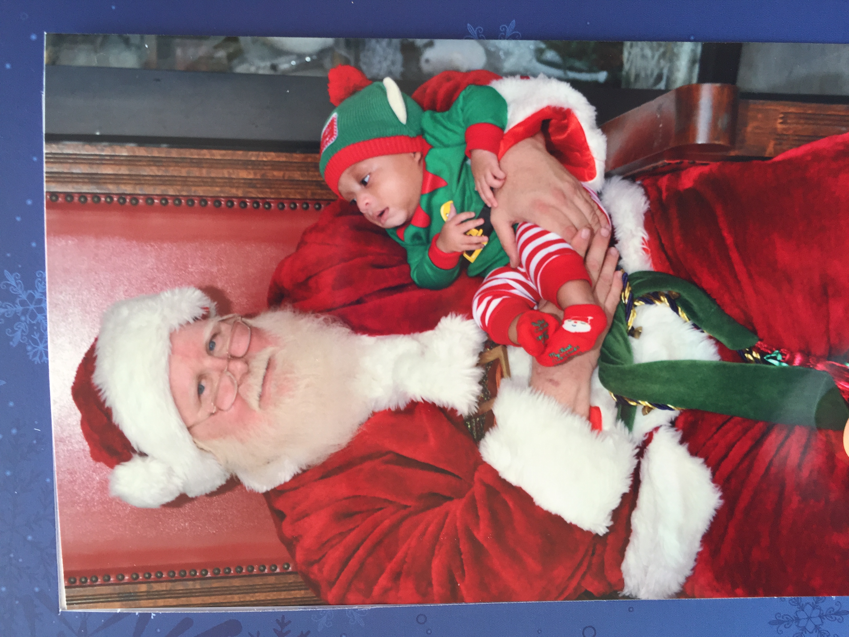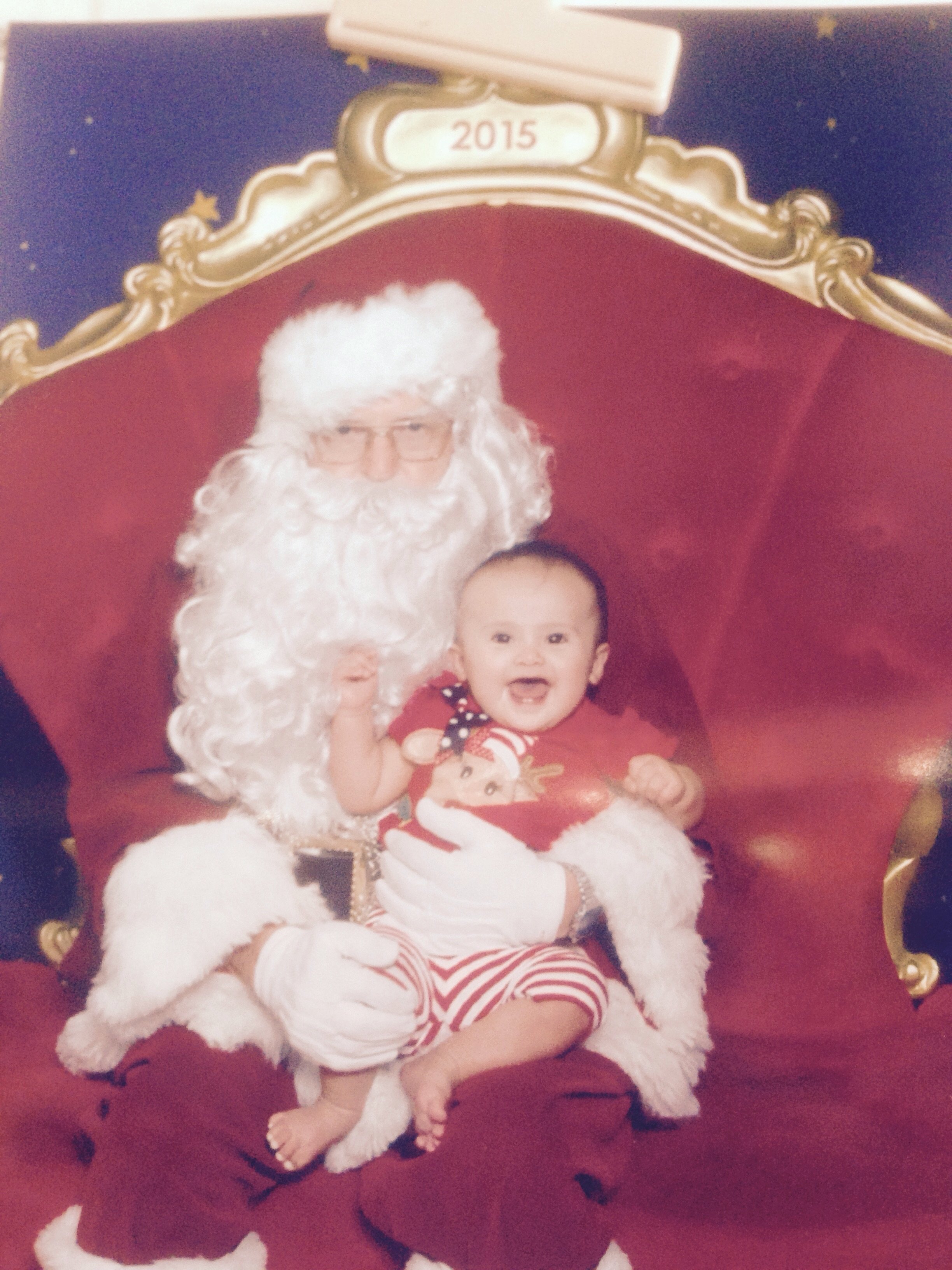 Best we got of LO with Santa. Otherwise, he was pulling Santa's beard (which was real!), stealing Santa's glasses (because he does that to mommy, too), or crying towards the end.