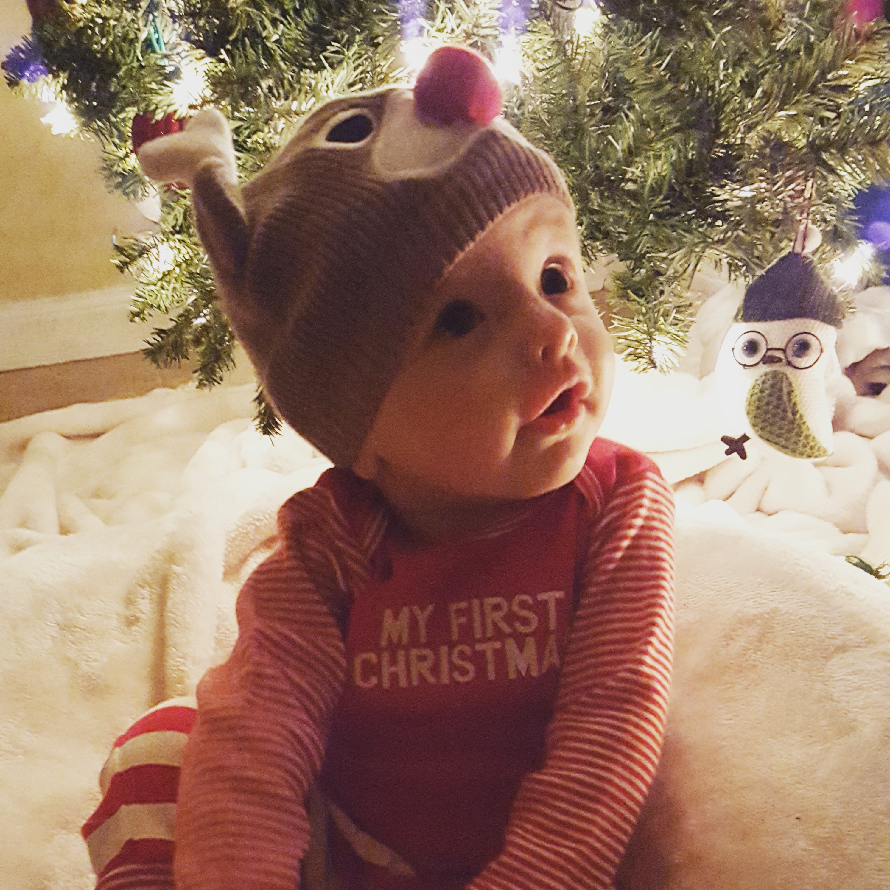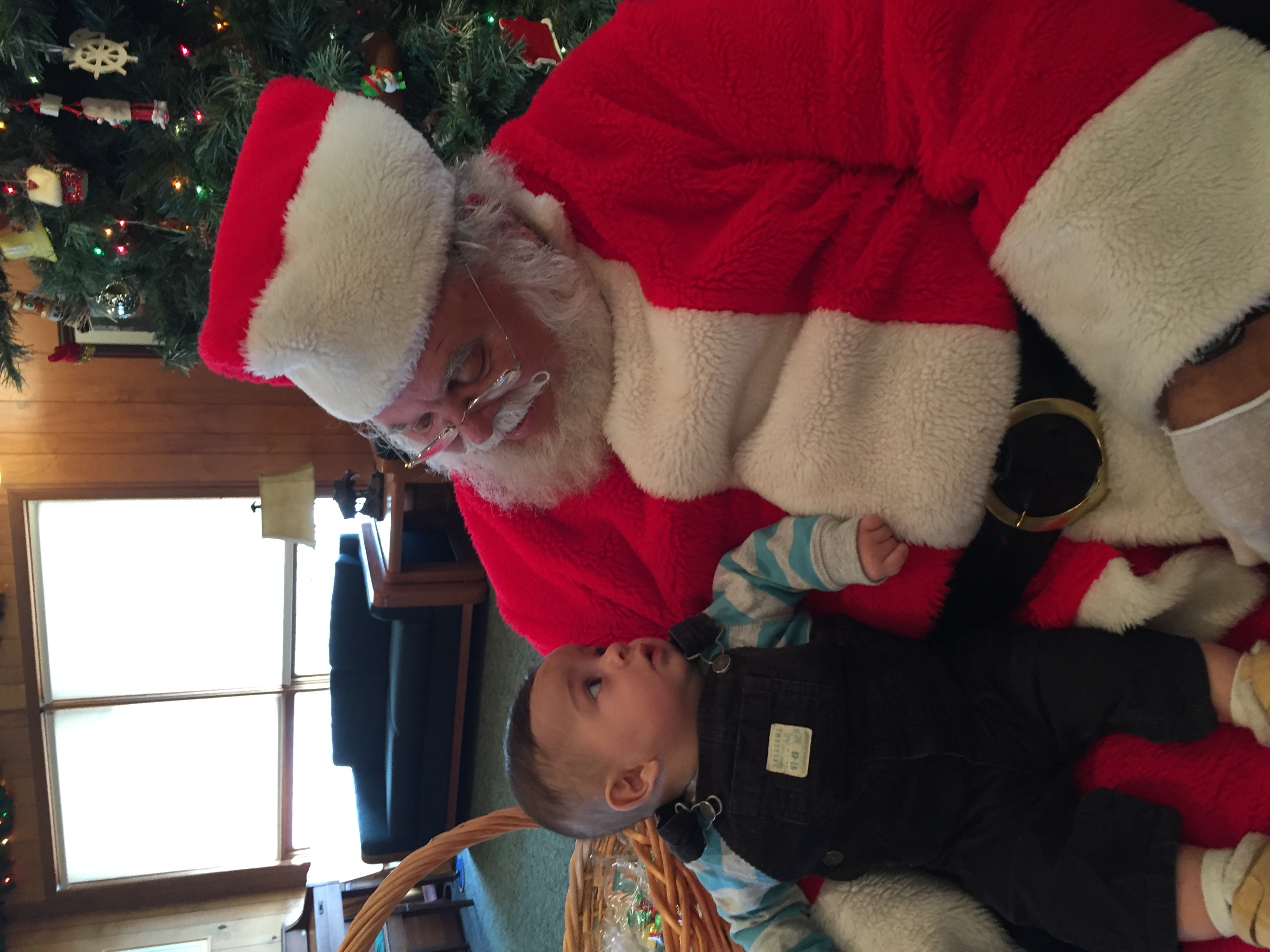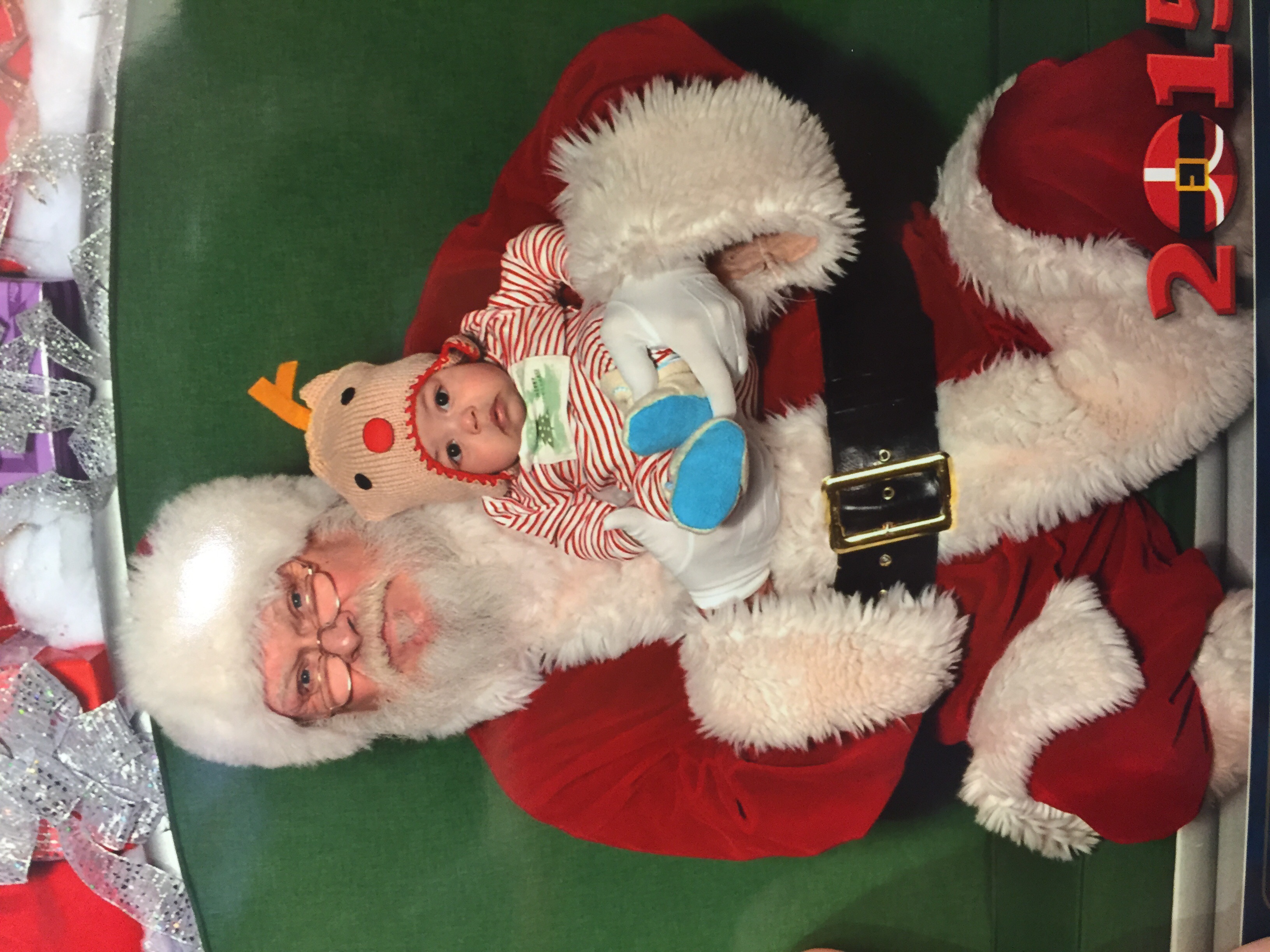 Best we got of LO with Santa. Otherwise, he was pulling Santa's beard (which was real!), stealing Santa's glasses (because he does that to mommy, too), or crying towards the end.