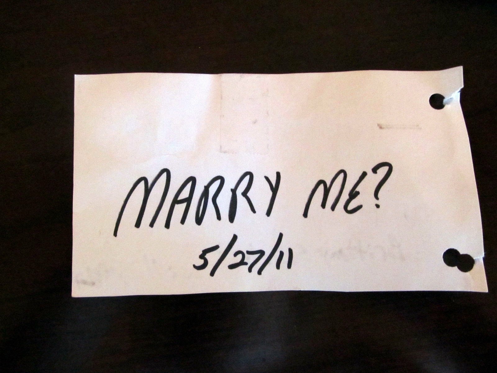 Once at the Space Needle, we looked around for about 20 minutes or so, then he says, "Hey, remember this?" And pulls out a notecard and hands it to me.