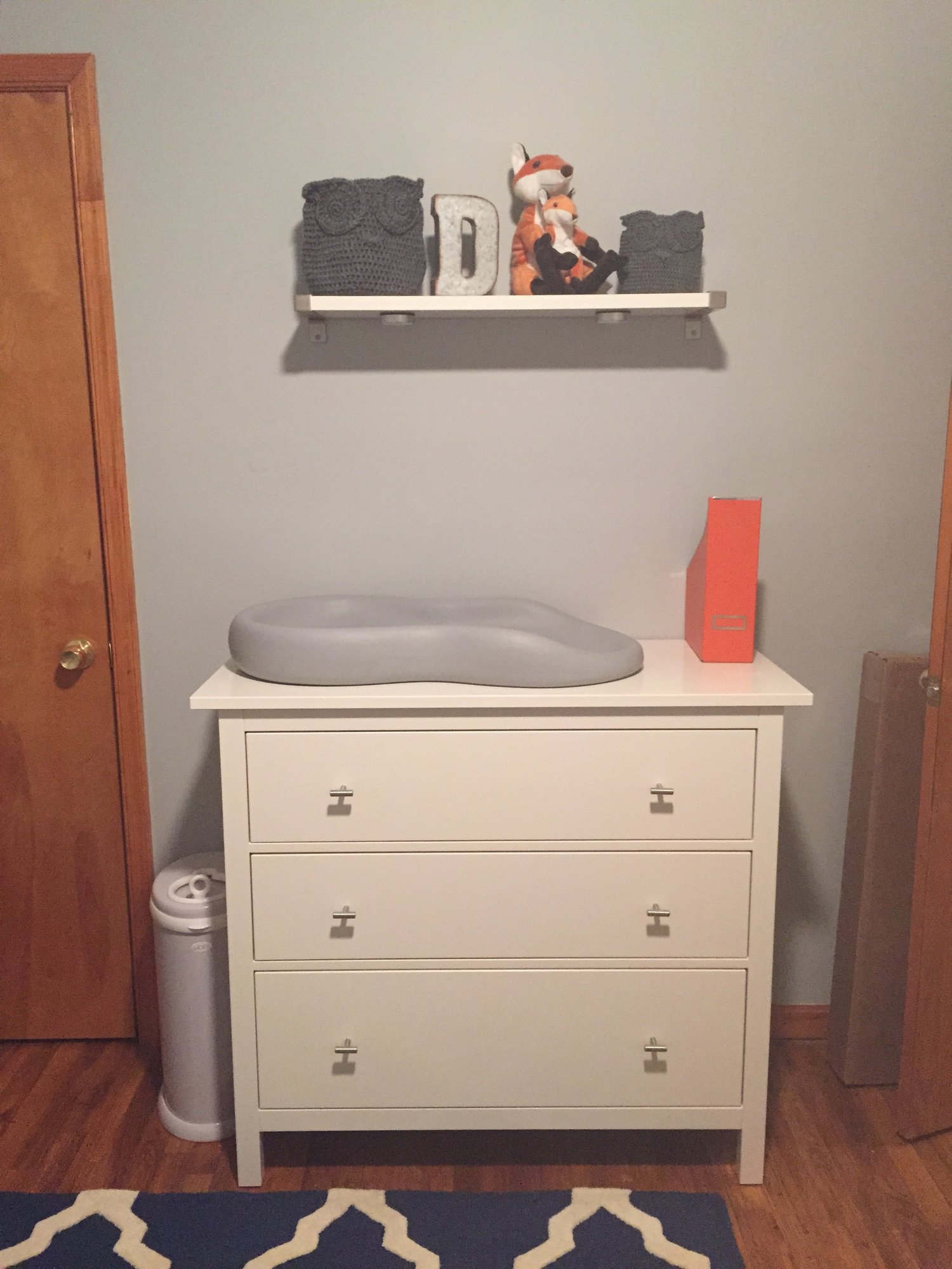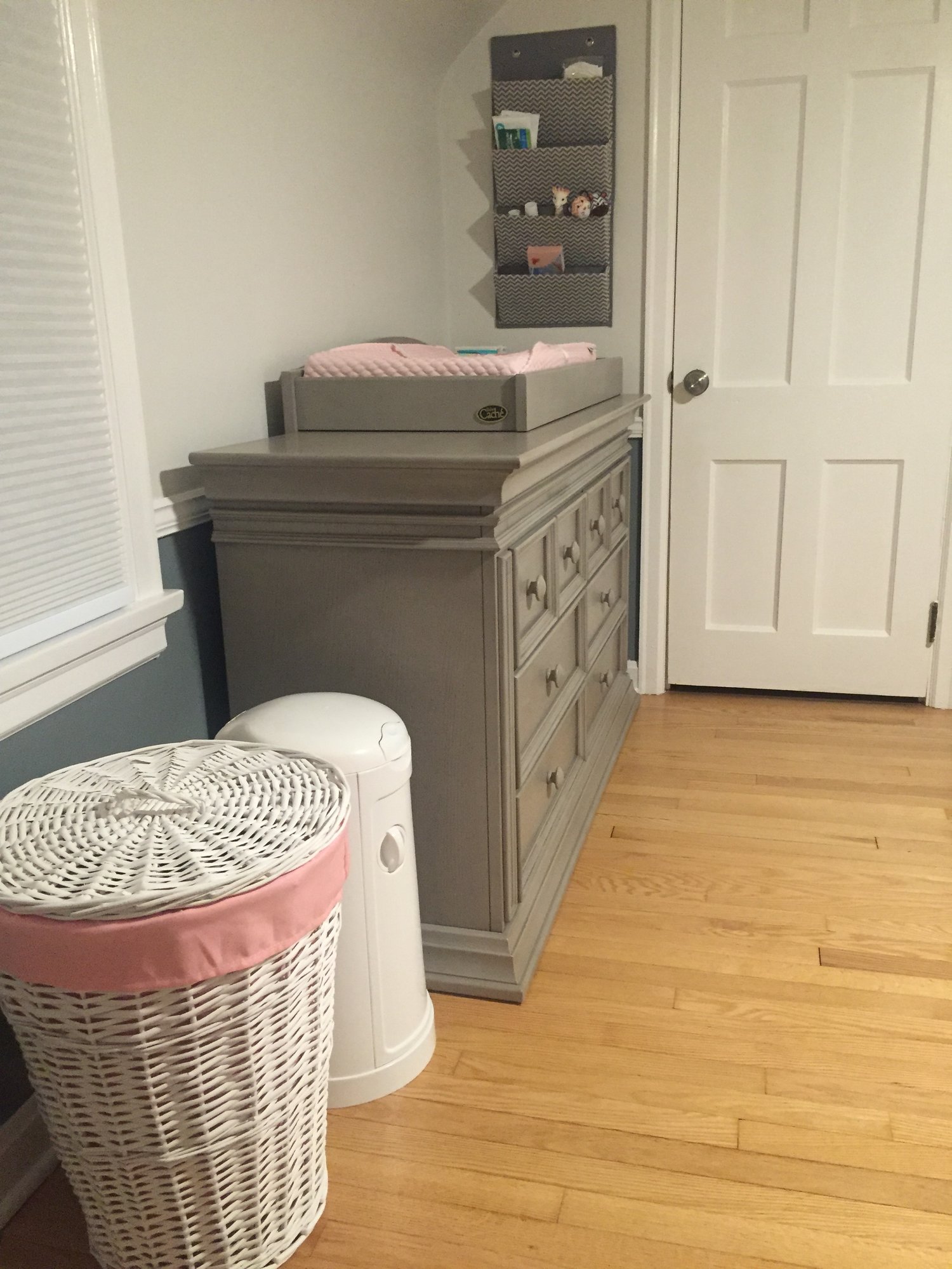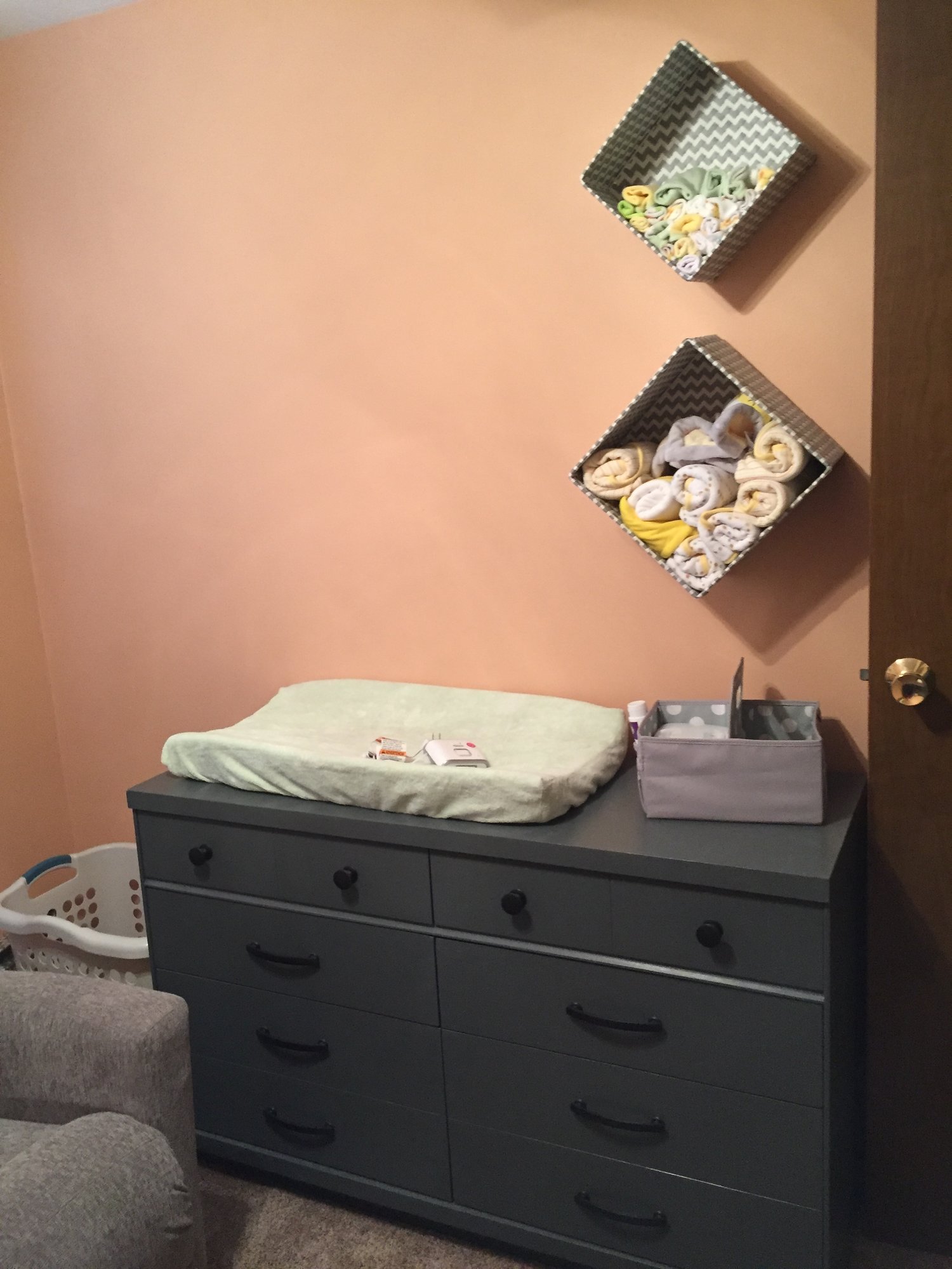 @eivaska what do you mean a dresser that's too high to be safe for baby? We have one that the height of the surface comes to our elbows. My husband and I are tall too so we needed something ergonomic. I have a cruddy back so anything that makes me *slightly* bend over like washing dishes at a regular height sink or vacuuming kills my back. We swapped out a low dresser and a higher one from our bedroom to use with our first.