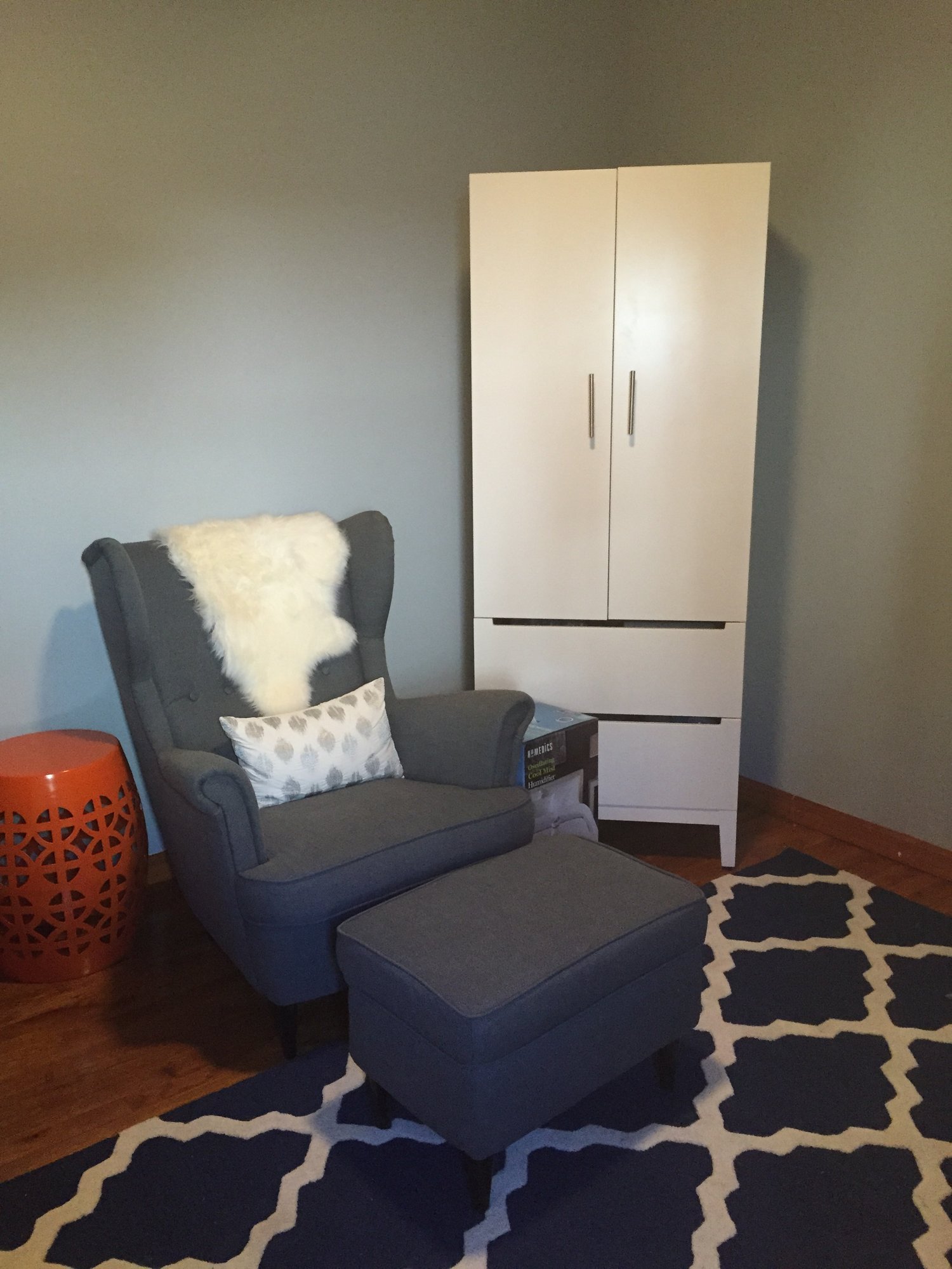 Props to you all !! I am a professional interior designer ( i.e. I have a degree in interior design ) and my nursery is not done ! I just spent the past month in hospital and now I'm on bed rest, my mom flew in last month and painted for me but with odd sized Windows ( two of them arghh ) and me being picky and wanting blue toile... curtains won't be made until my mom is back 3 weeks after my due date and I still have a rug to buy... Chair to buy... Changing station ... Basically everything - I'm so glad my clients havnt asked to see pictures, it would be an embarrassment !! Well done to you that are so on the ball !!