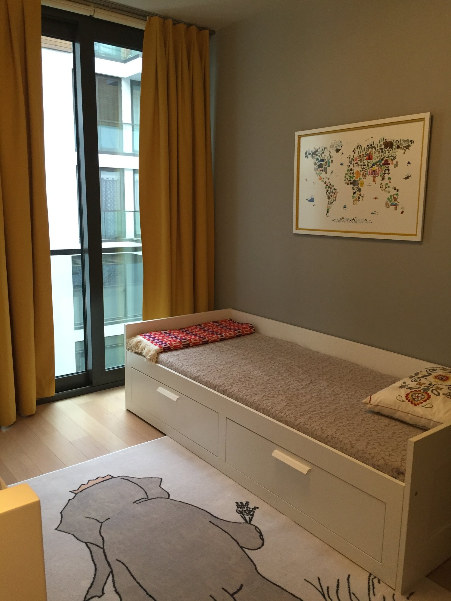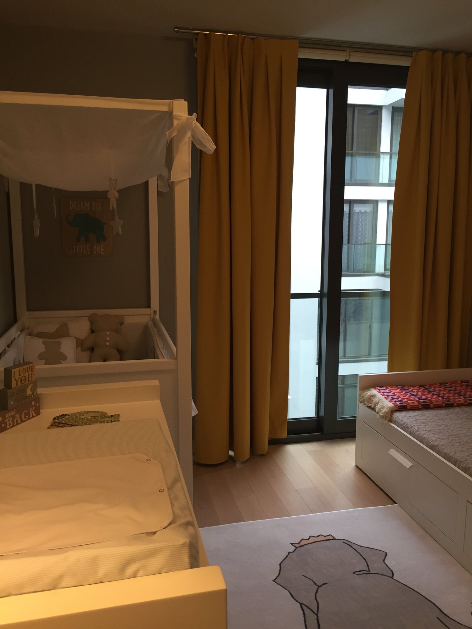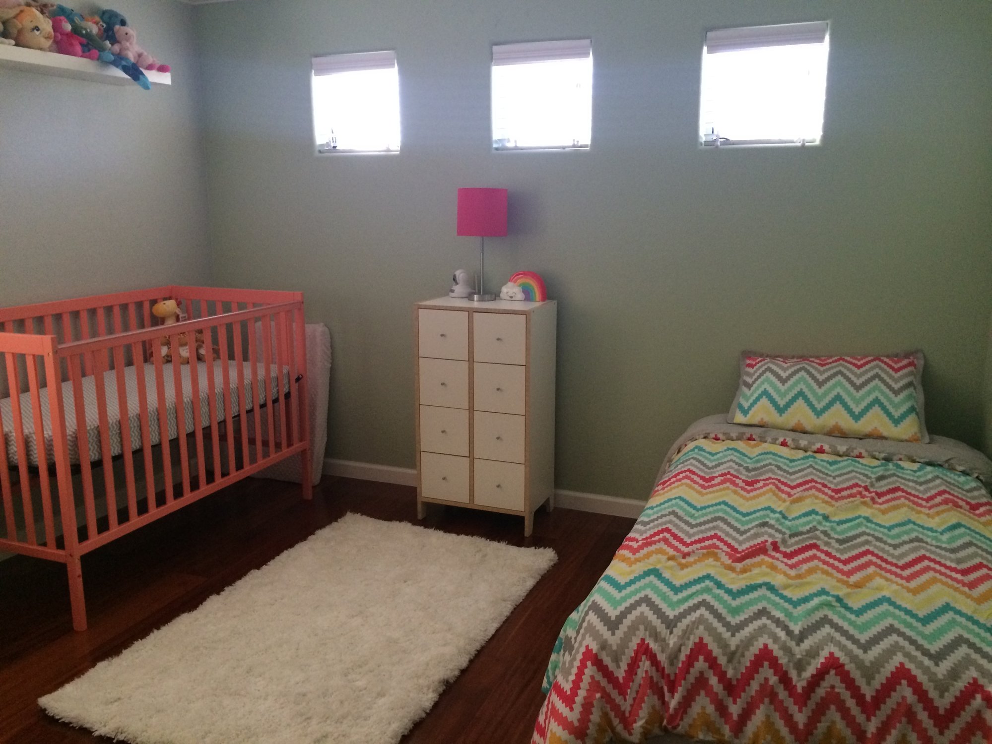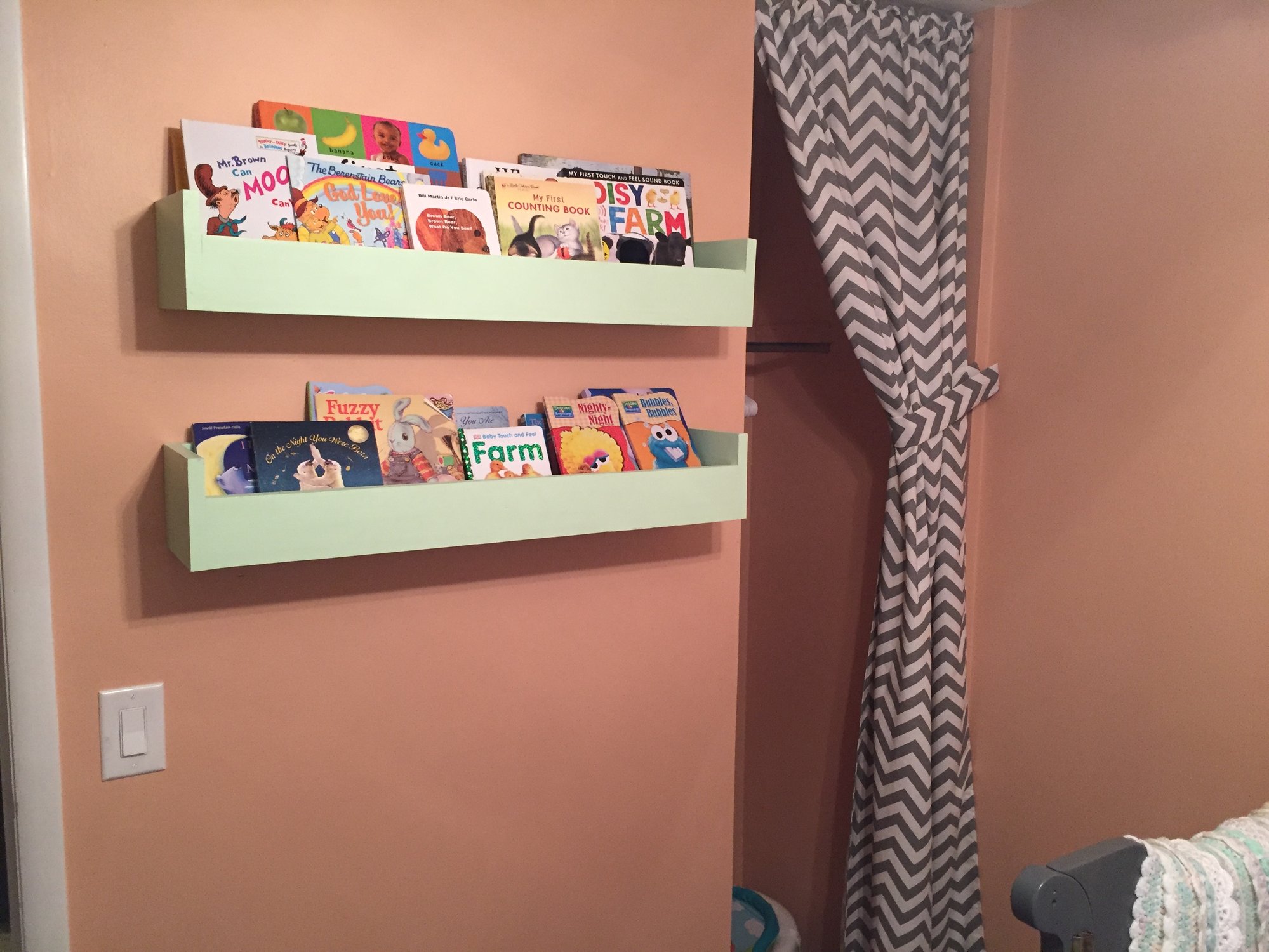 I failed at measuring a bit, so we were lucky that they JUST barely fit beside the window. Math is hard with pregnancy brain!