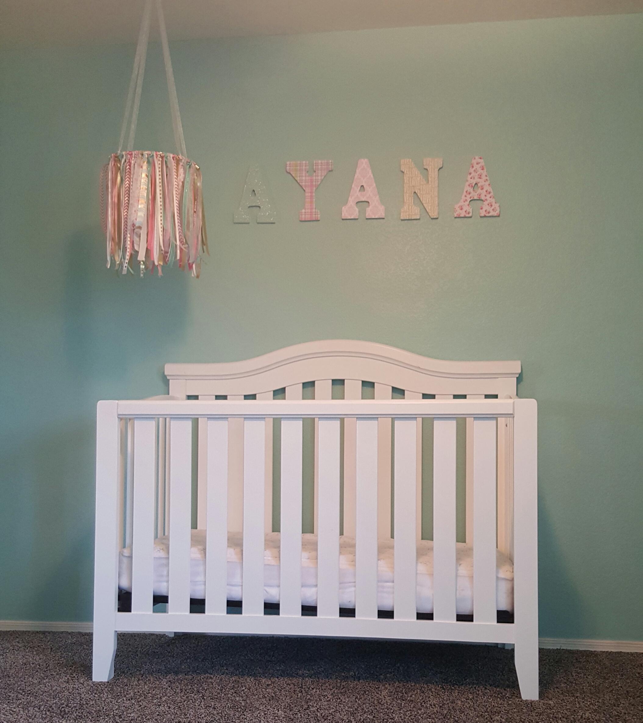 • @Kennedy0830 The mint looks very pretty. I did a mint accent wall to go behind the crib.