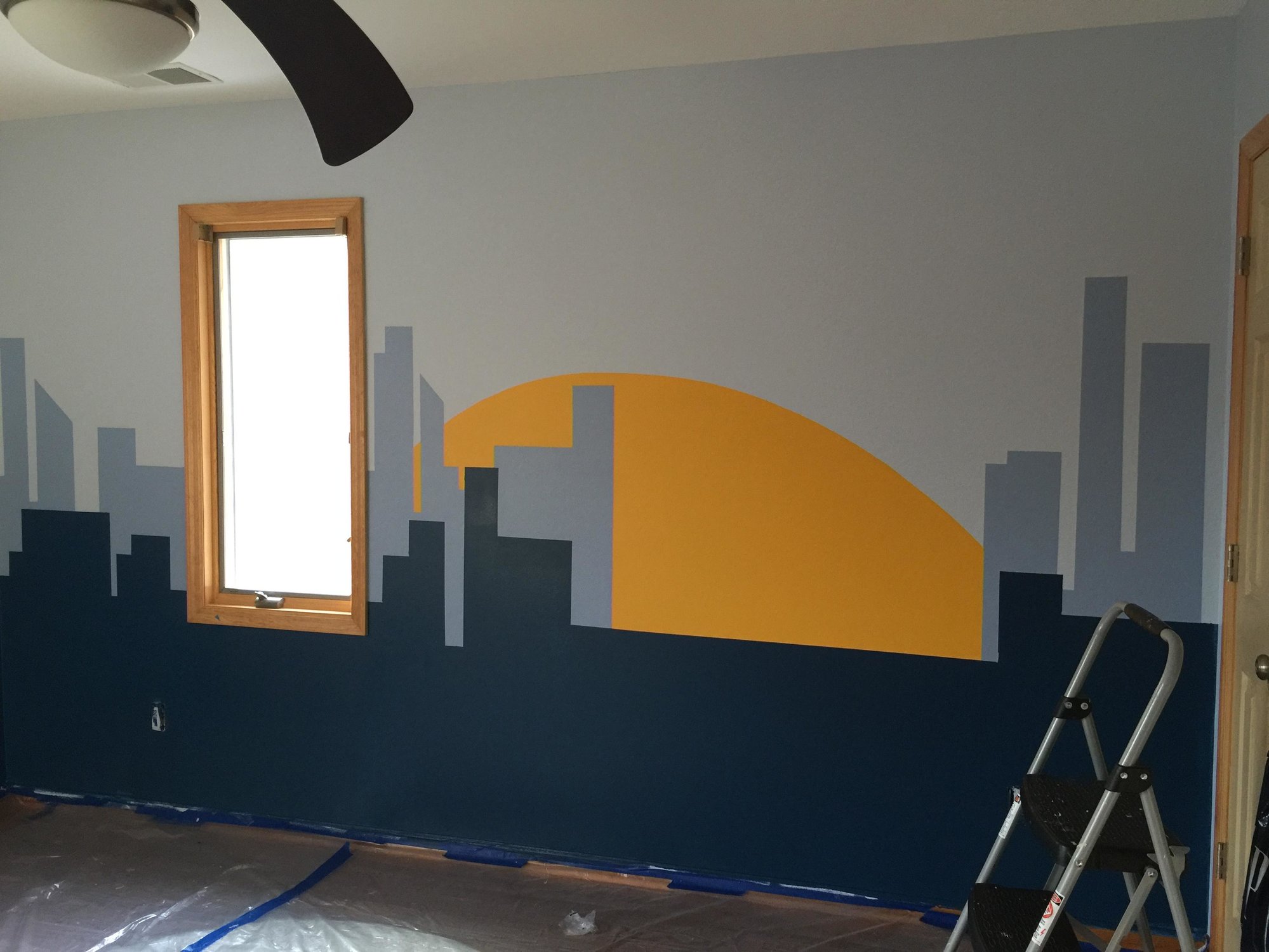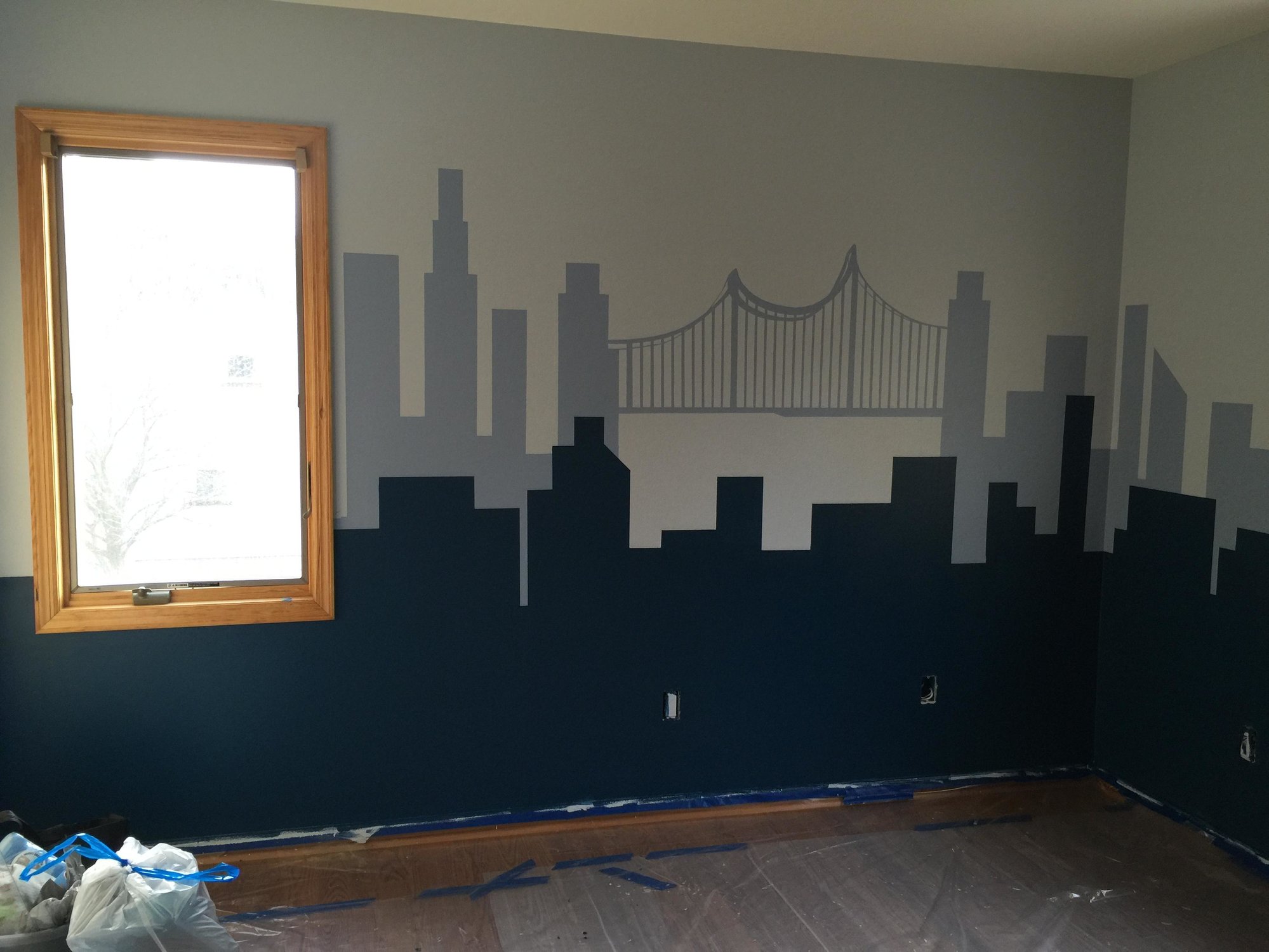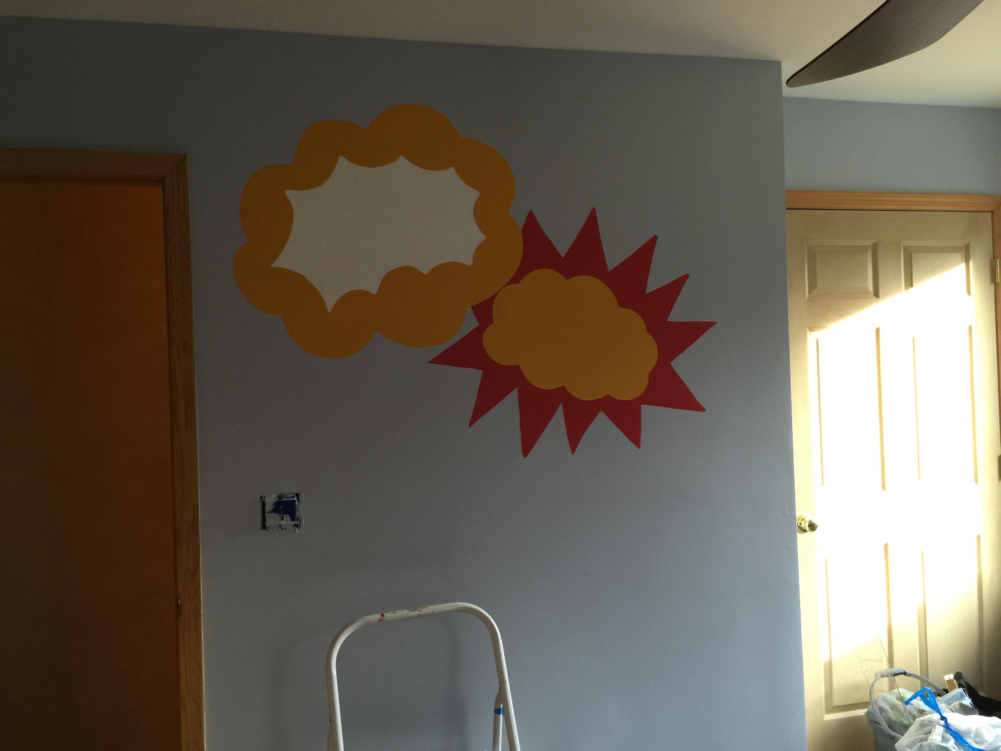 I am doing a super hero theme as my son and daughter will be sharing a room. This is our progress so far on the painting. I will have white furniture and really looking forward to my son's reaction to the room. This is also being done as a transition to his big boy bed!
