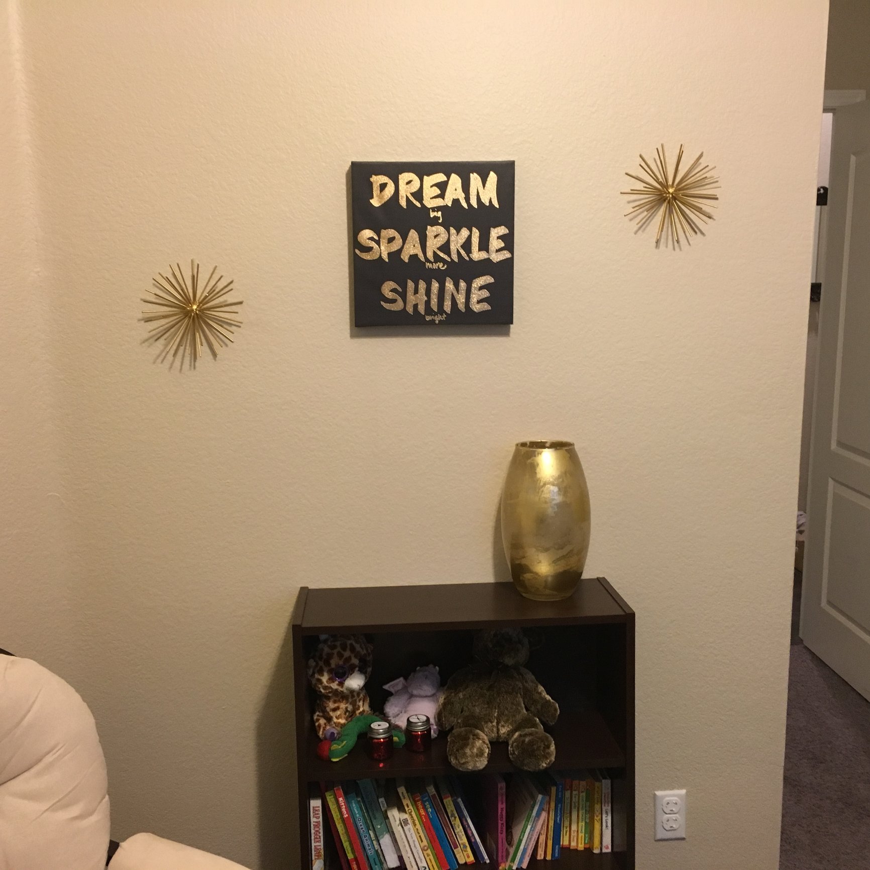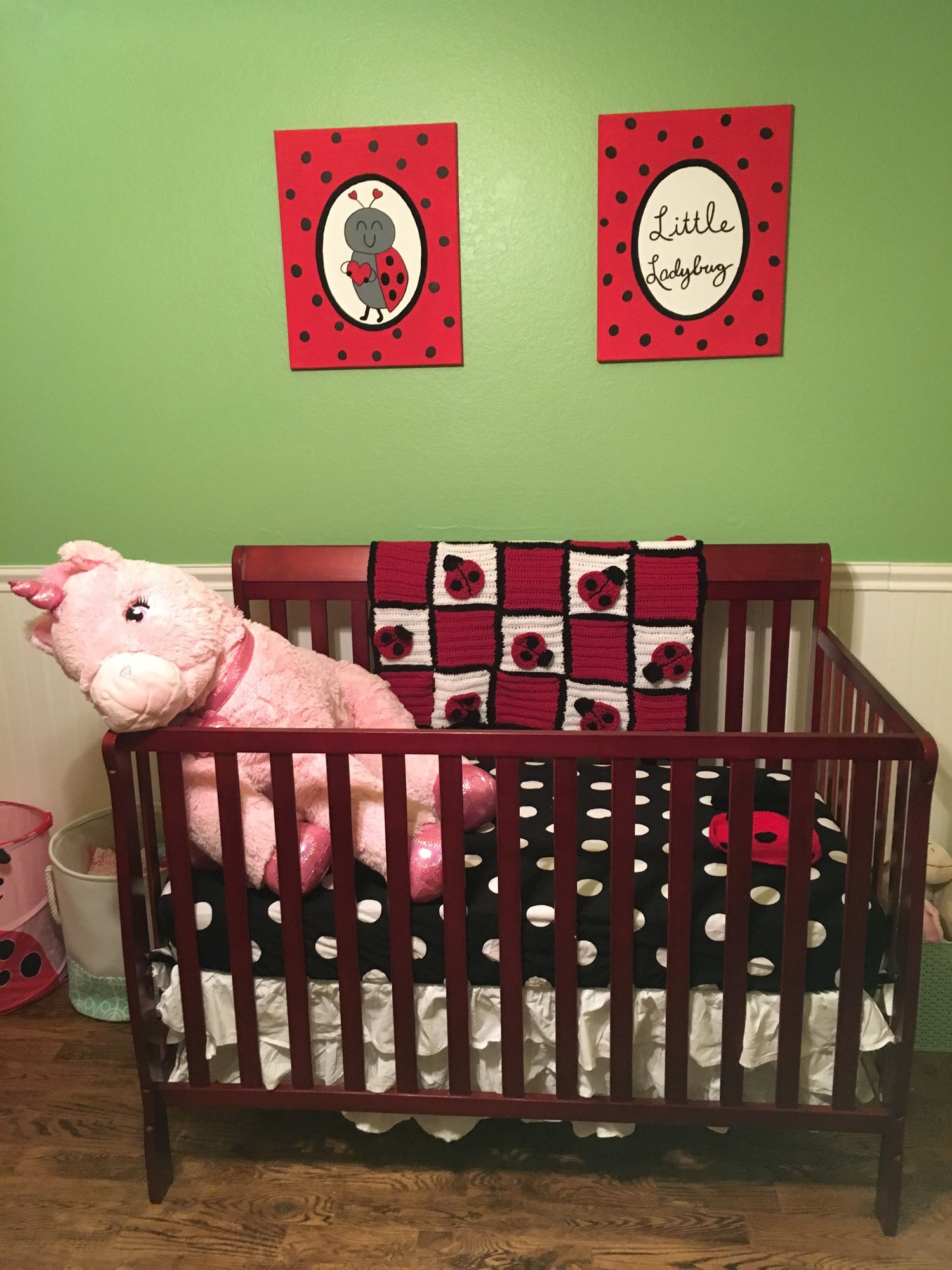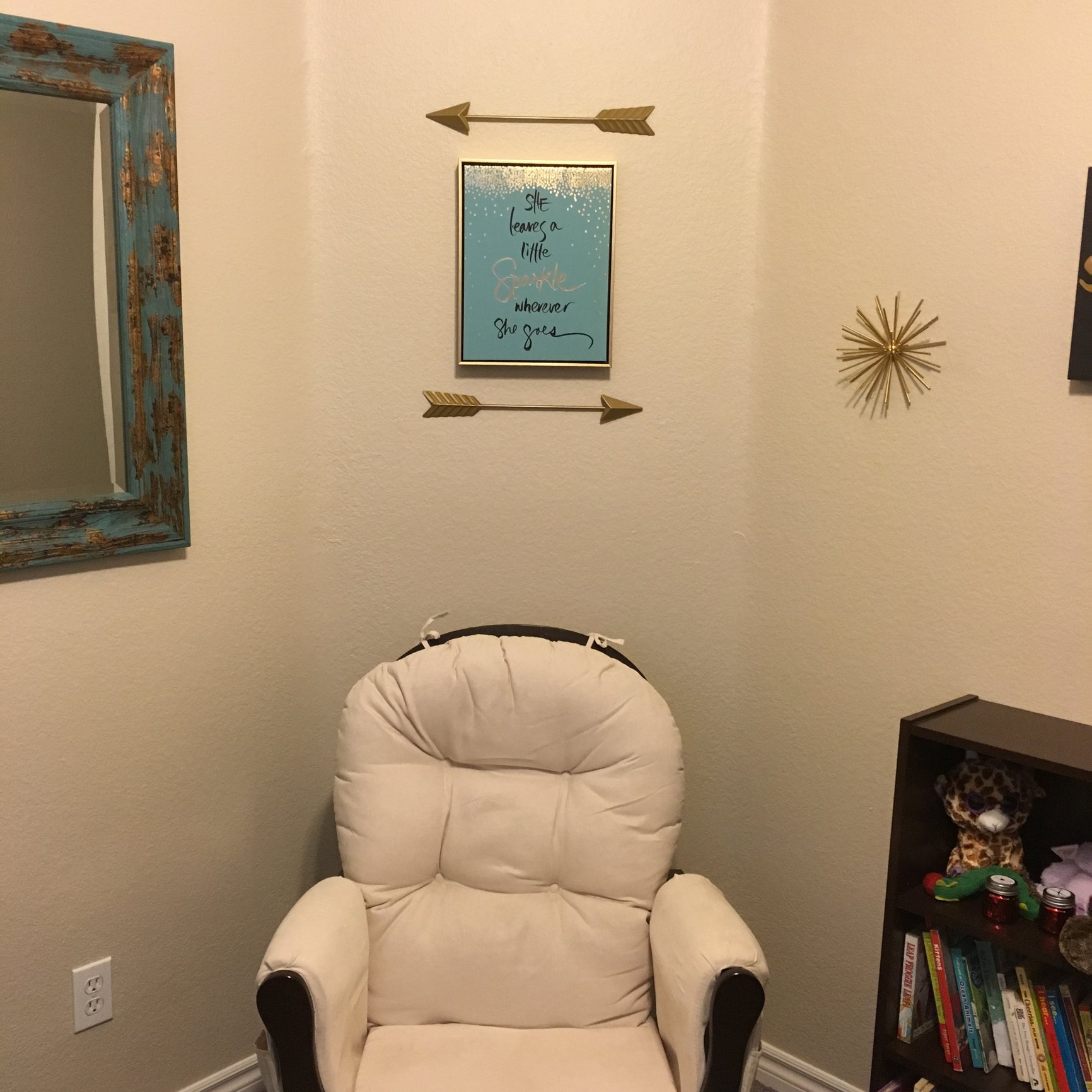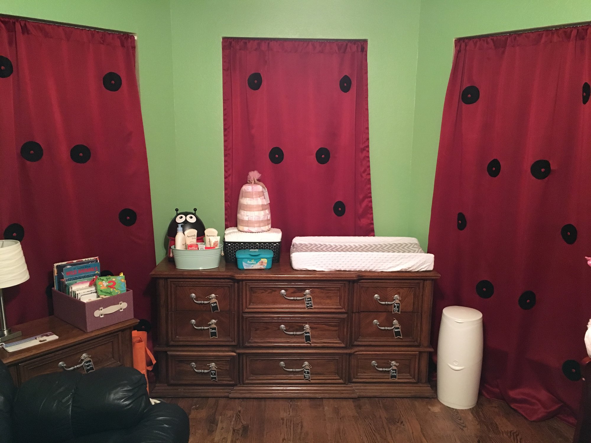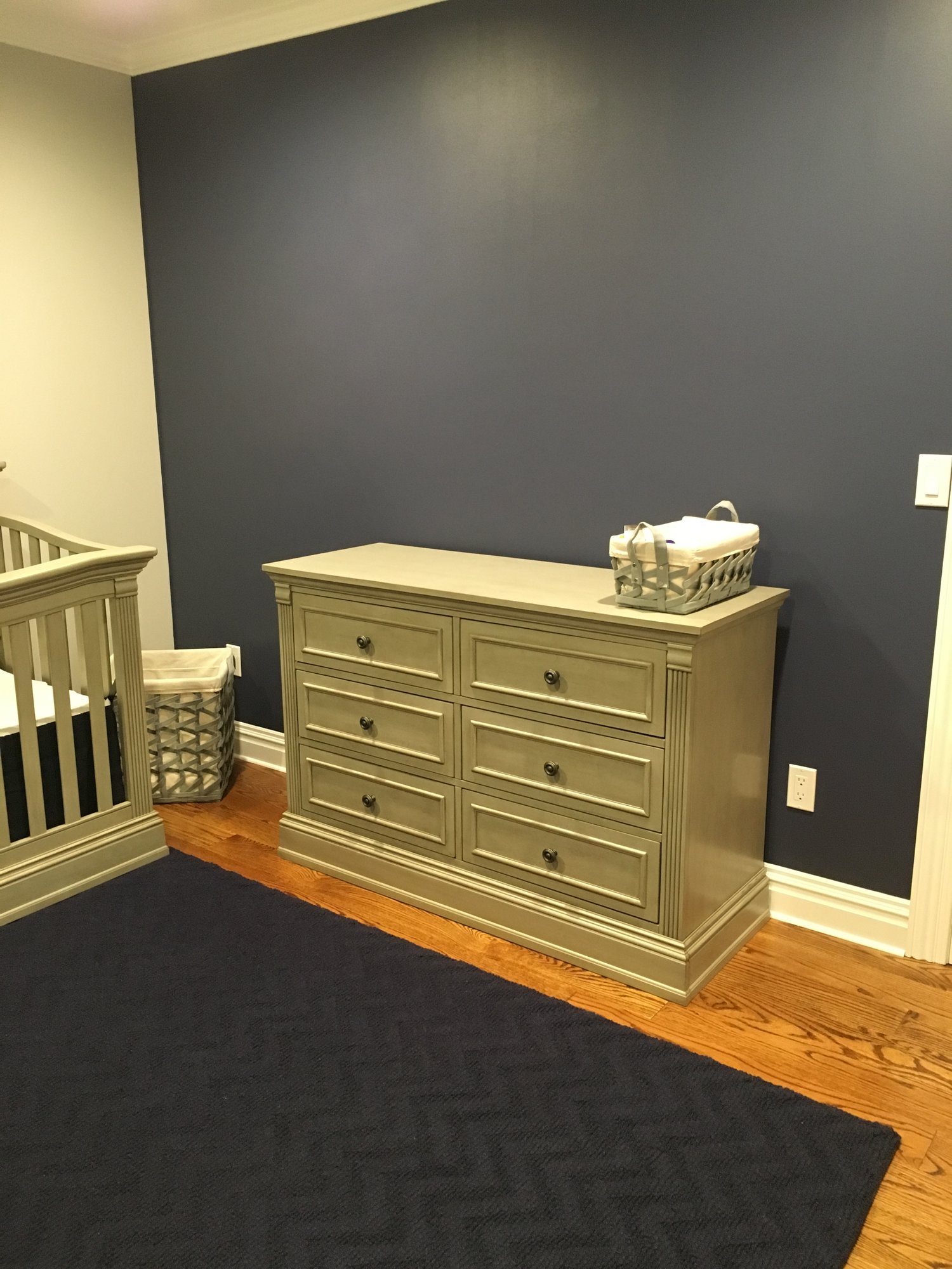 We don't have a nursery to decorate right now so we mixed everything within our room and closet room for now. Hopefully by the end of summer we will have our home renovations done so we can move him into his own room. My Mother--in-law custom made the baseball blanket, changing pad cover, glider cushion covers along with many other blankets, sheets and pad covers. The little wagon with books was custom made out of old barn wood, I thought it turned out great.