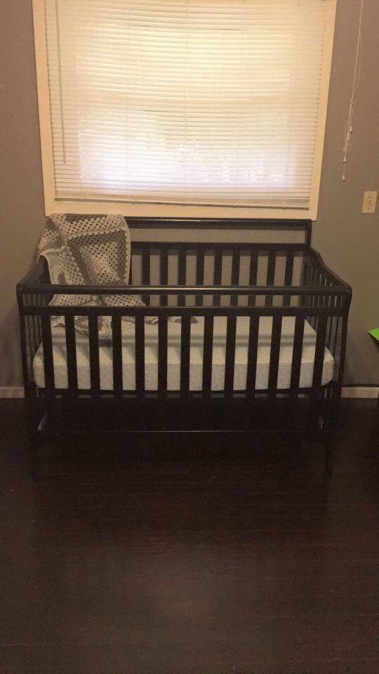 Thank you! It's from Babies R Us.... Sorelle Verona Convertible Crib in Vintage Gray Espresso.