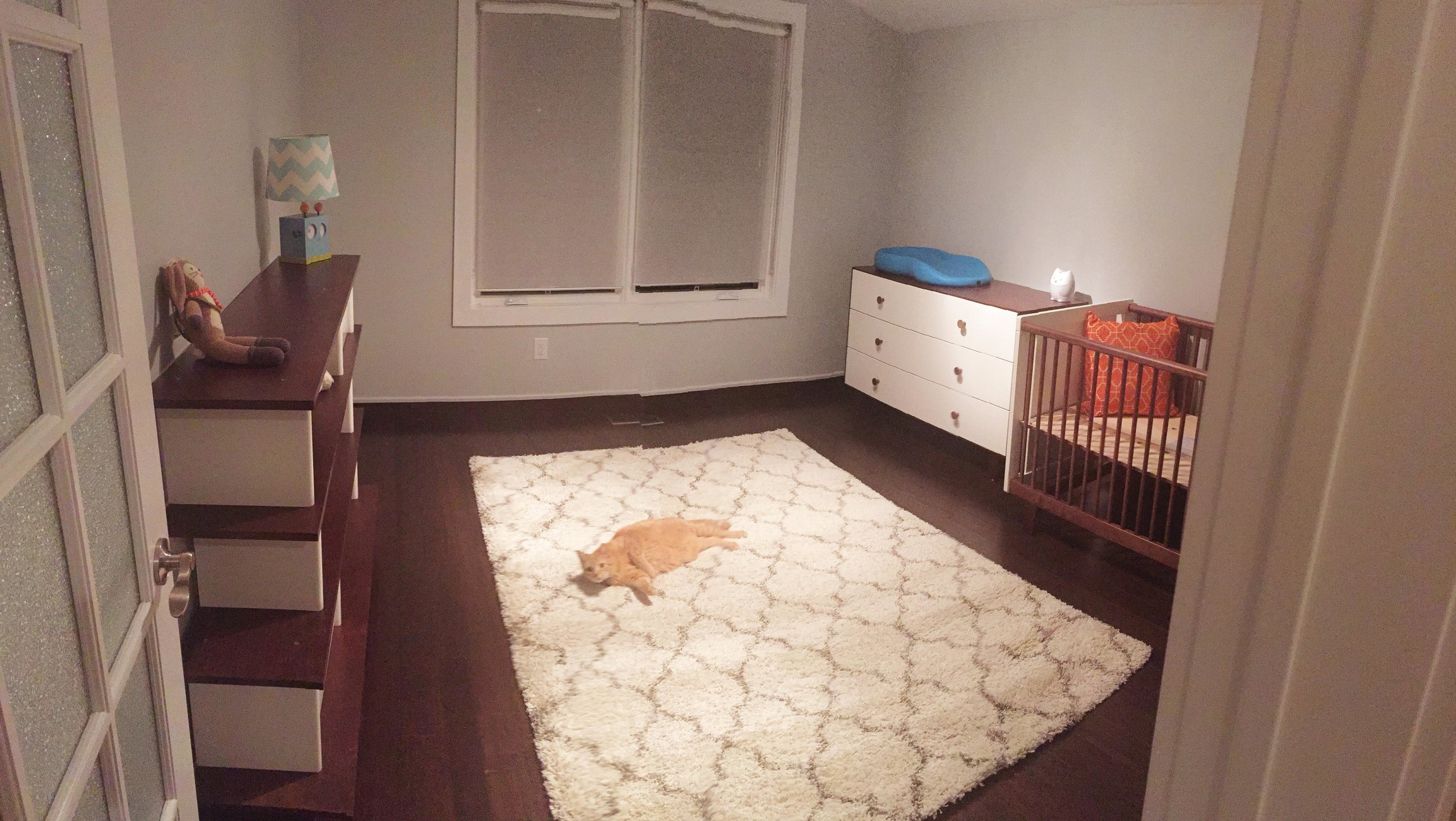 Still have a lot of work to do on his nursery. The room is so small it's like playing Tetris to fit the crib, chair and dresser in there and have it look okay.