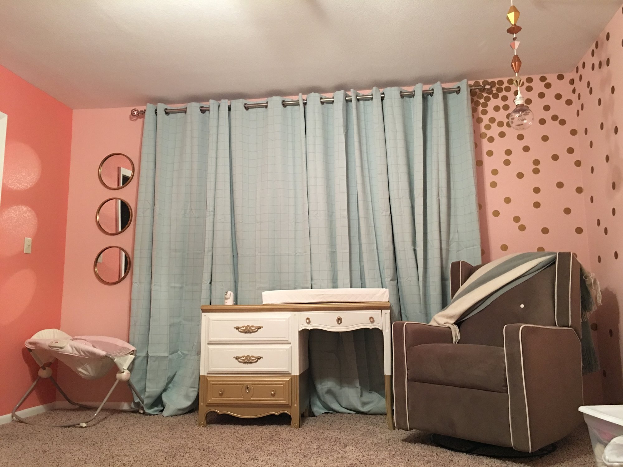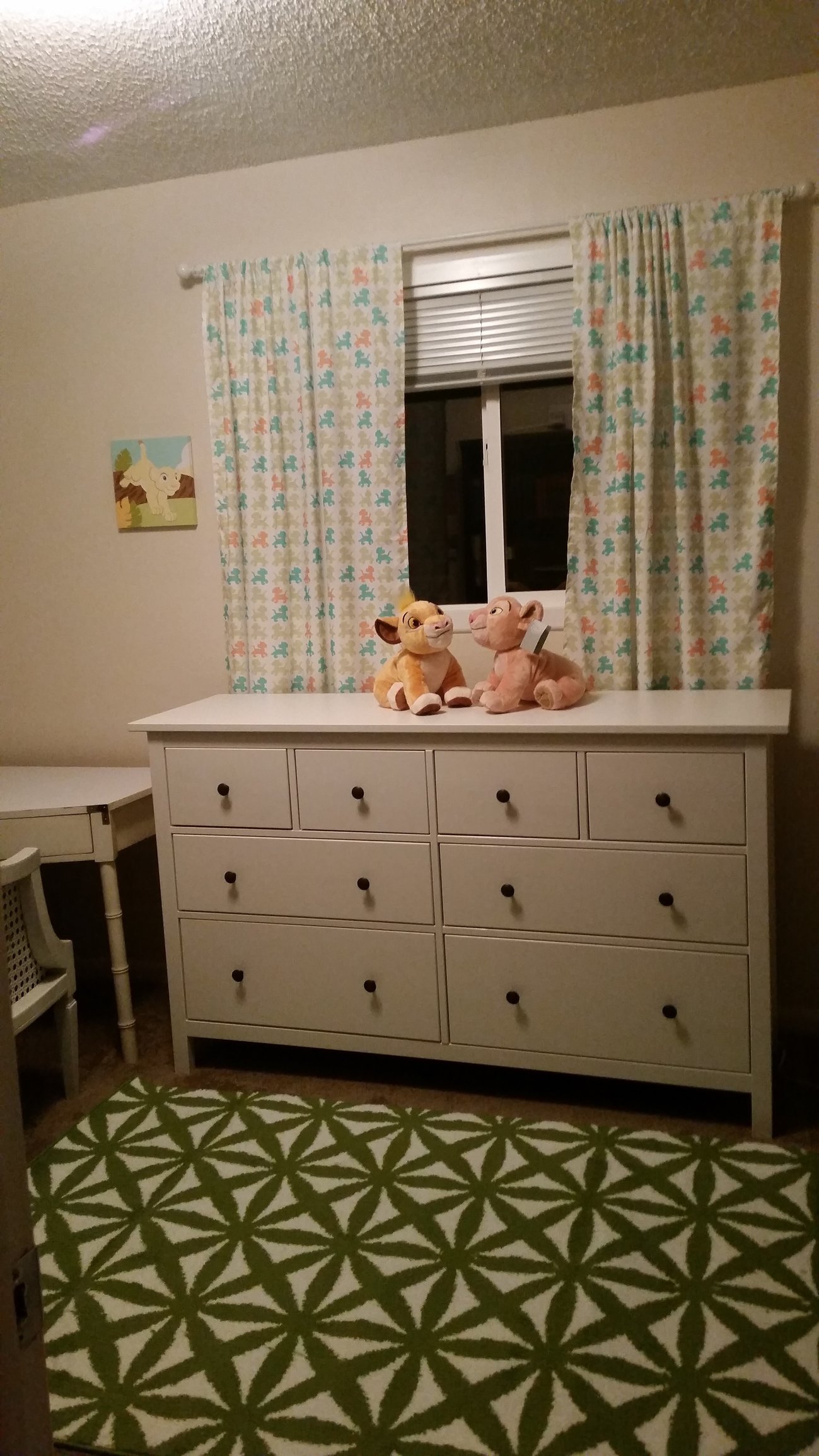 I feel like it's finally coming together. I need to get a changing pad and I'm waiting on the blinds to come in still . Frankie decided to photobomb me but he's part of the nursery too as that rug is his new favorite spot.
