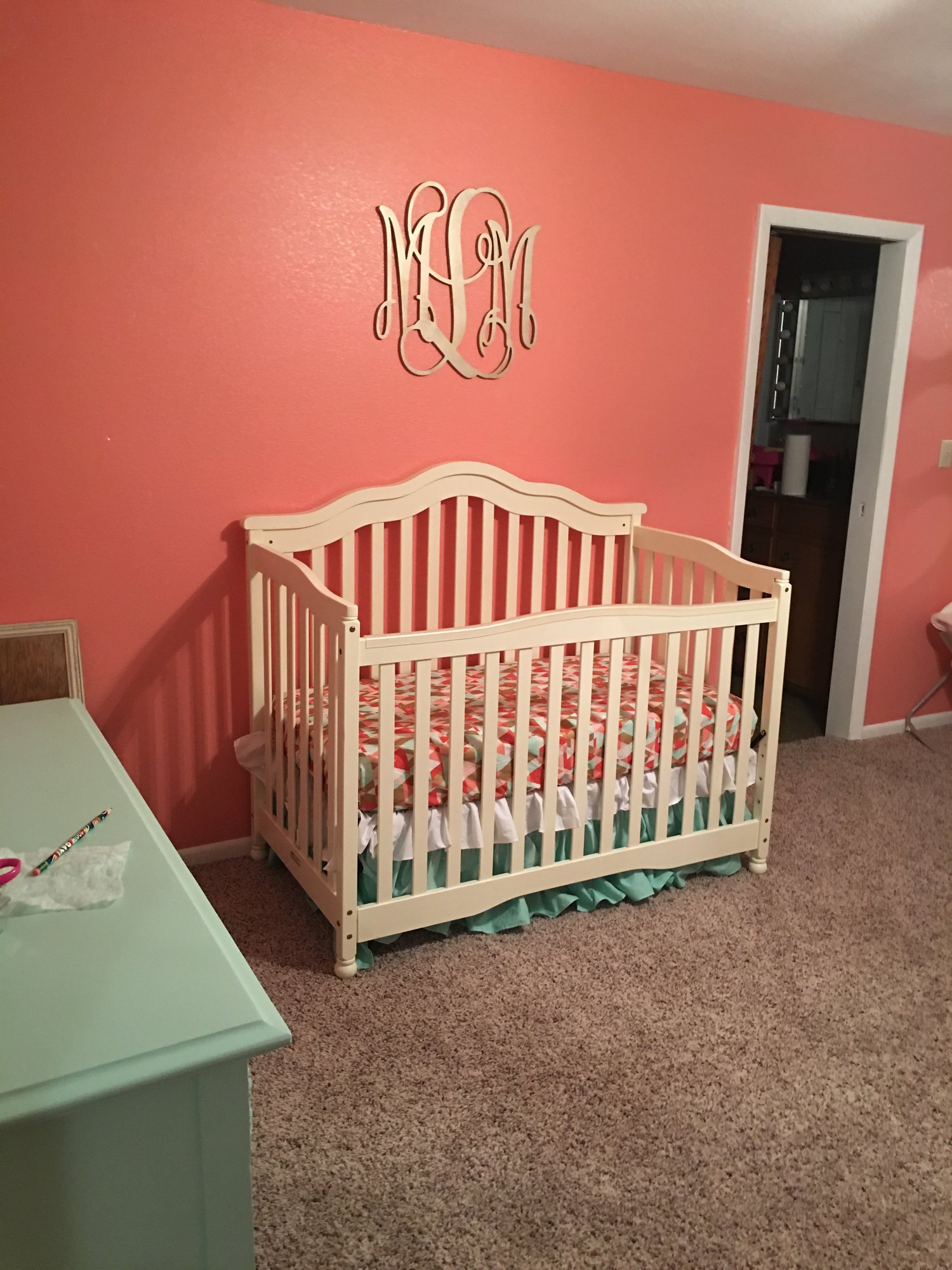 Ok ladies I need your opinions! I'm having a hard time deciding on crib bedding and decor. Here is a picture of my crib and the wall color (It is a really light pink stipe not white) anyways would this bedding go? I'm thinking of using mint and gold for decor and accent colors but I'm not sure if the mint would look good or not. Honest opinions please