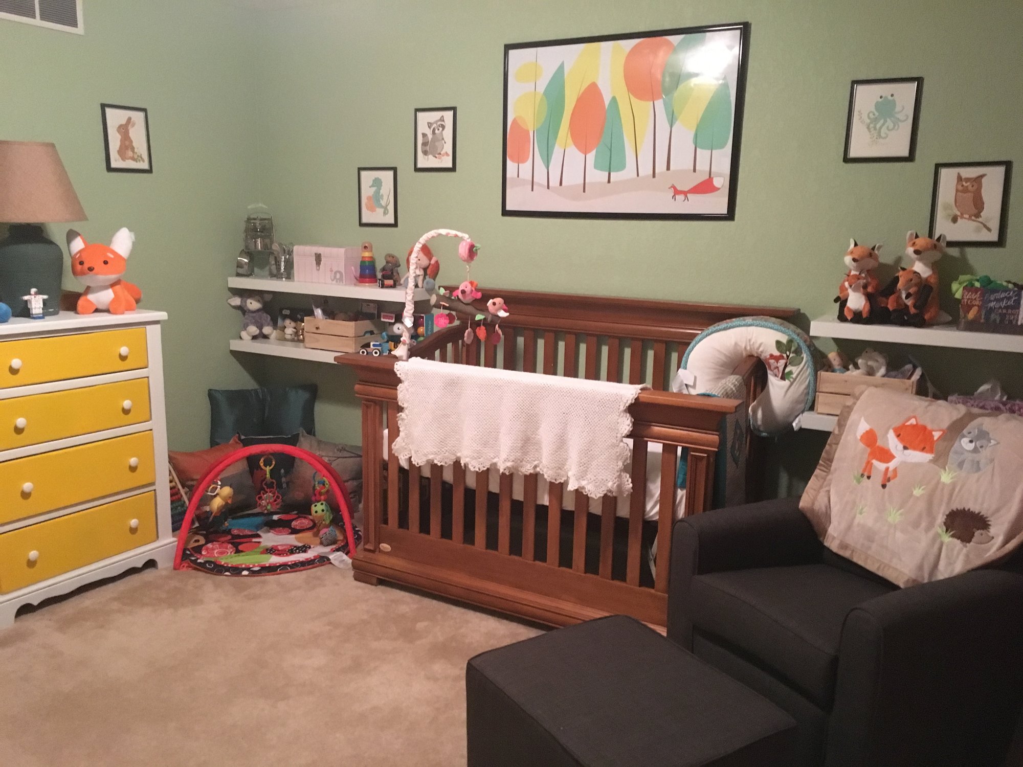 Obviously the plastic tote is not the final side table for the glider. And there's more things to go up on the walls, but overall, it's basically finished!