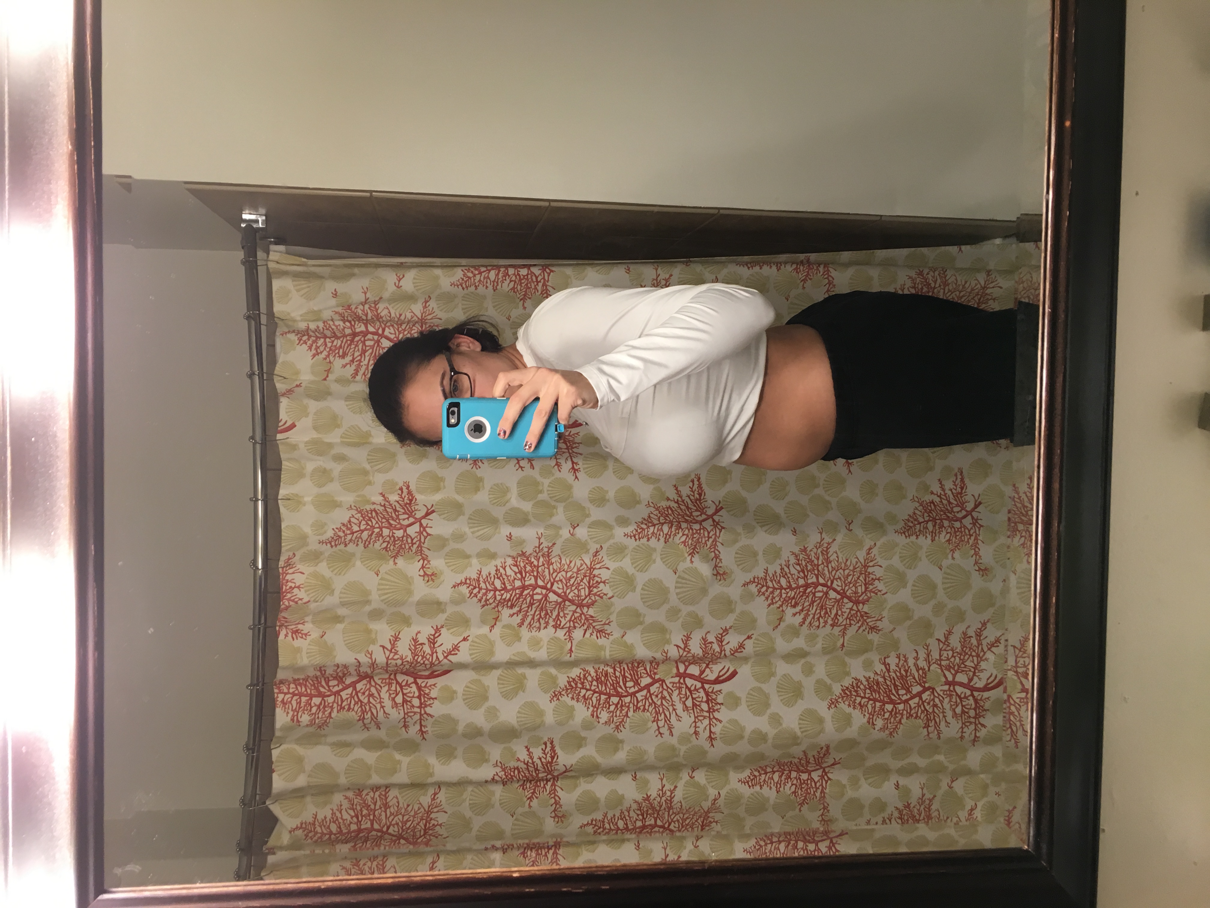 The bump and the boobs haha sorry this was for hubby this morning and I'm too lazy to take a clothed one! Happy hump day 8 weeks 5 days!