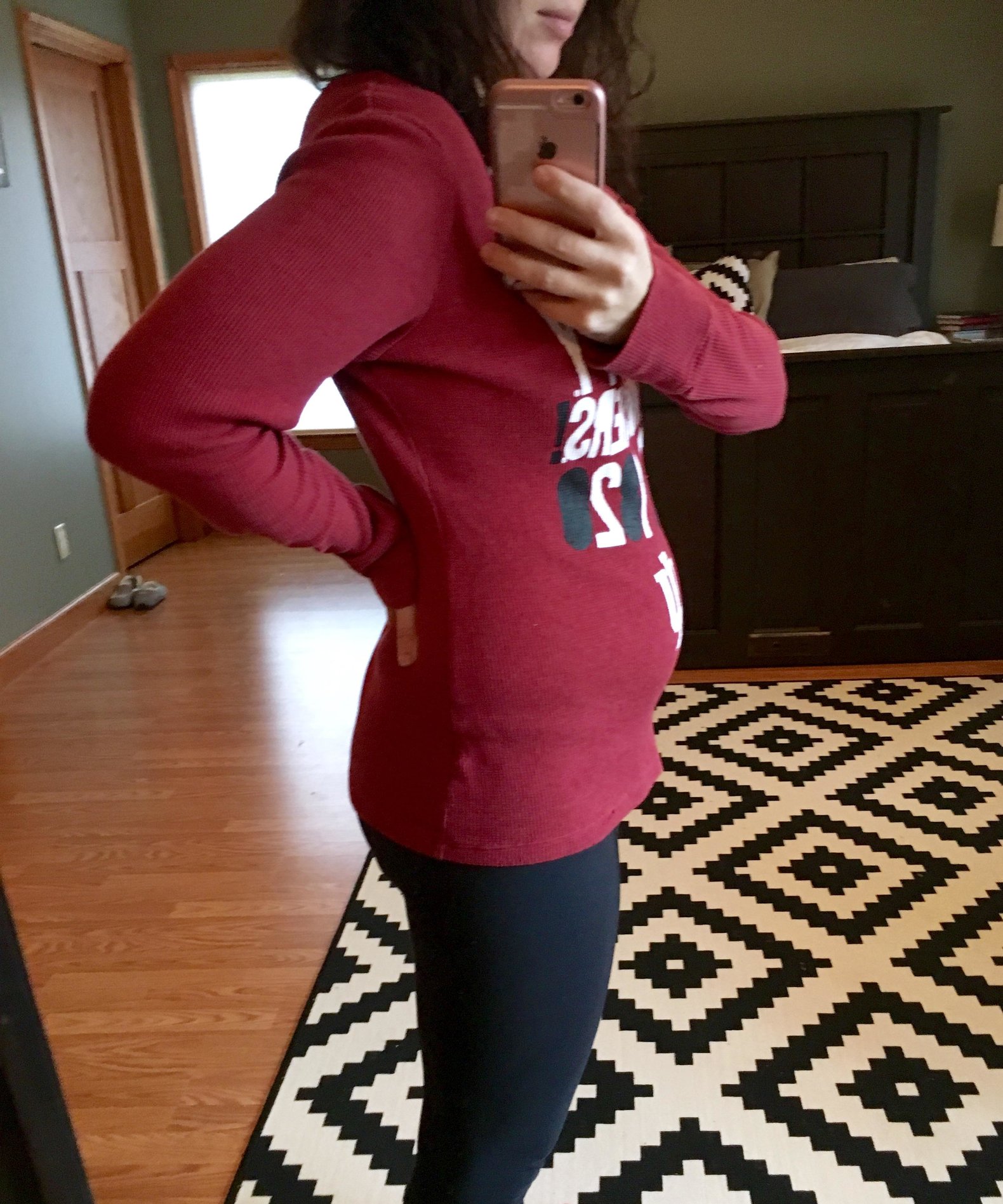 FTM 16+4. I still don't feel like it's a "bump". I feel like it's growing higher but not out yet, if that makes sense. Don't mind my less-than-enthused facial expression...I was recovering from my 12 hour visit from the vomit fairy.
