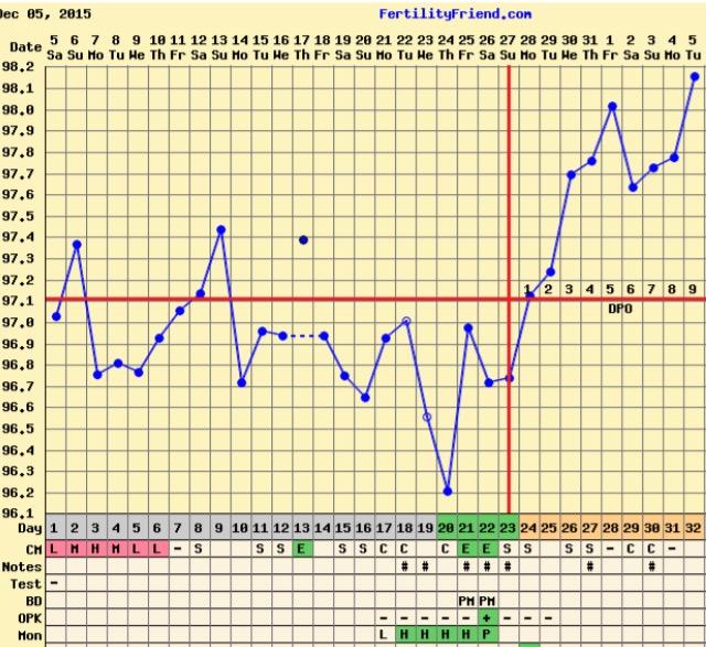 Testing: I got that big old bag of wondfos on Saturday, so naturally I gave in and they have been negative ever since. My temp went back up today but for some reason I just didn't test. I think I already have it in my head that I am out and don't want to see any more BFN, stark white tests.